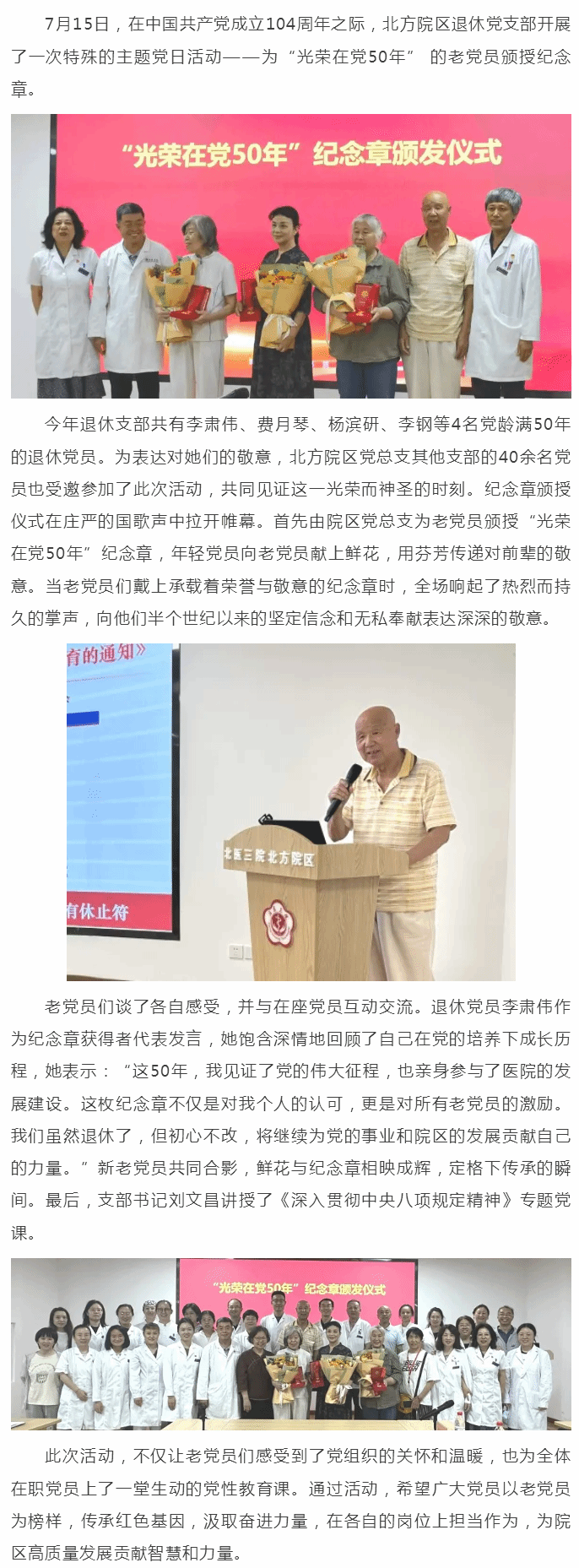北方院区举行“光荣在党50年”纪念章颁发仪式