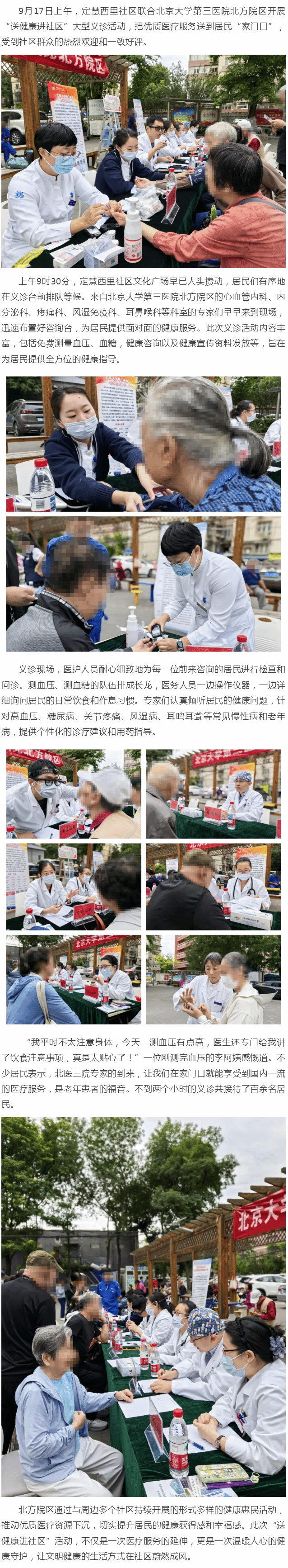 情暖社区 健康同行——北医三院北方院区定慧西里社区义诊纪实