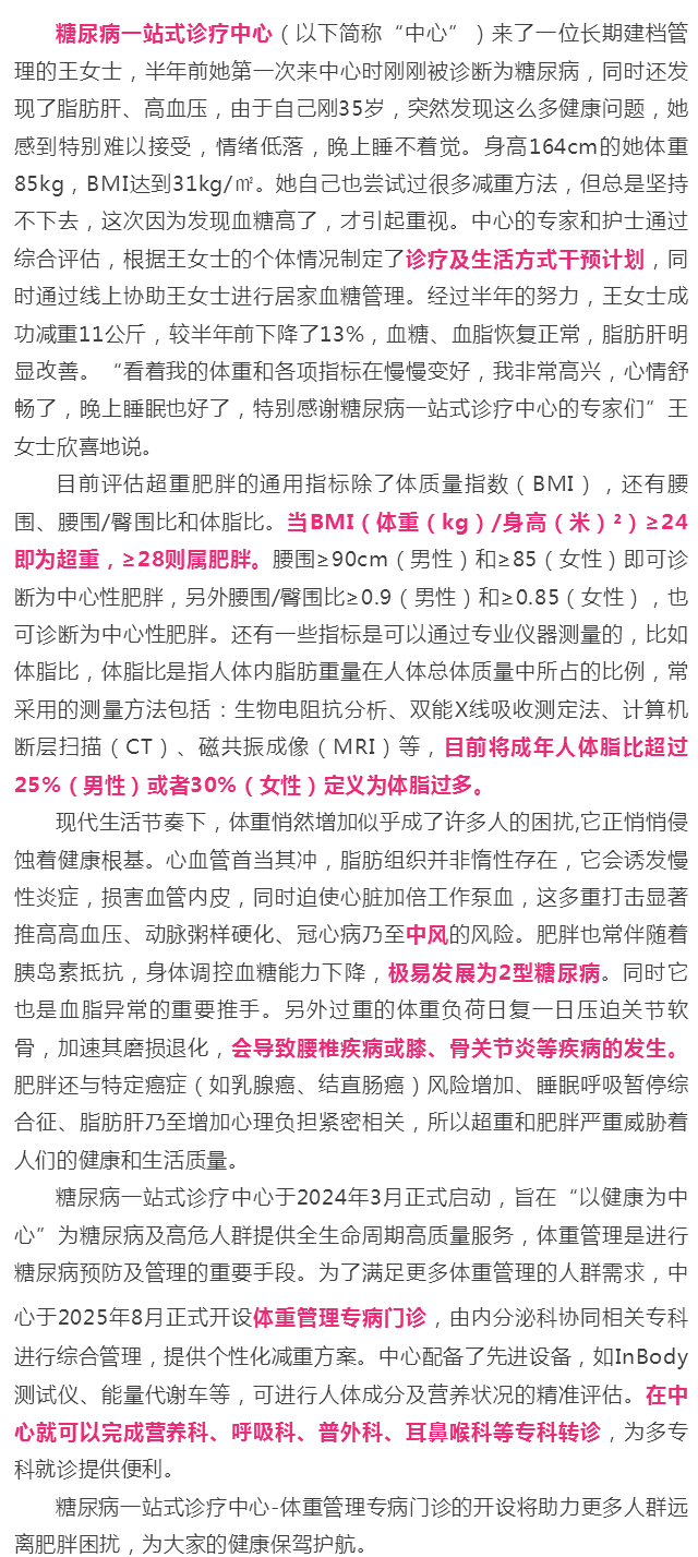 糖尿病一站式诊疗中心-体重管理专病门诊开启健康减重新篇章
