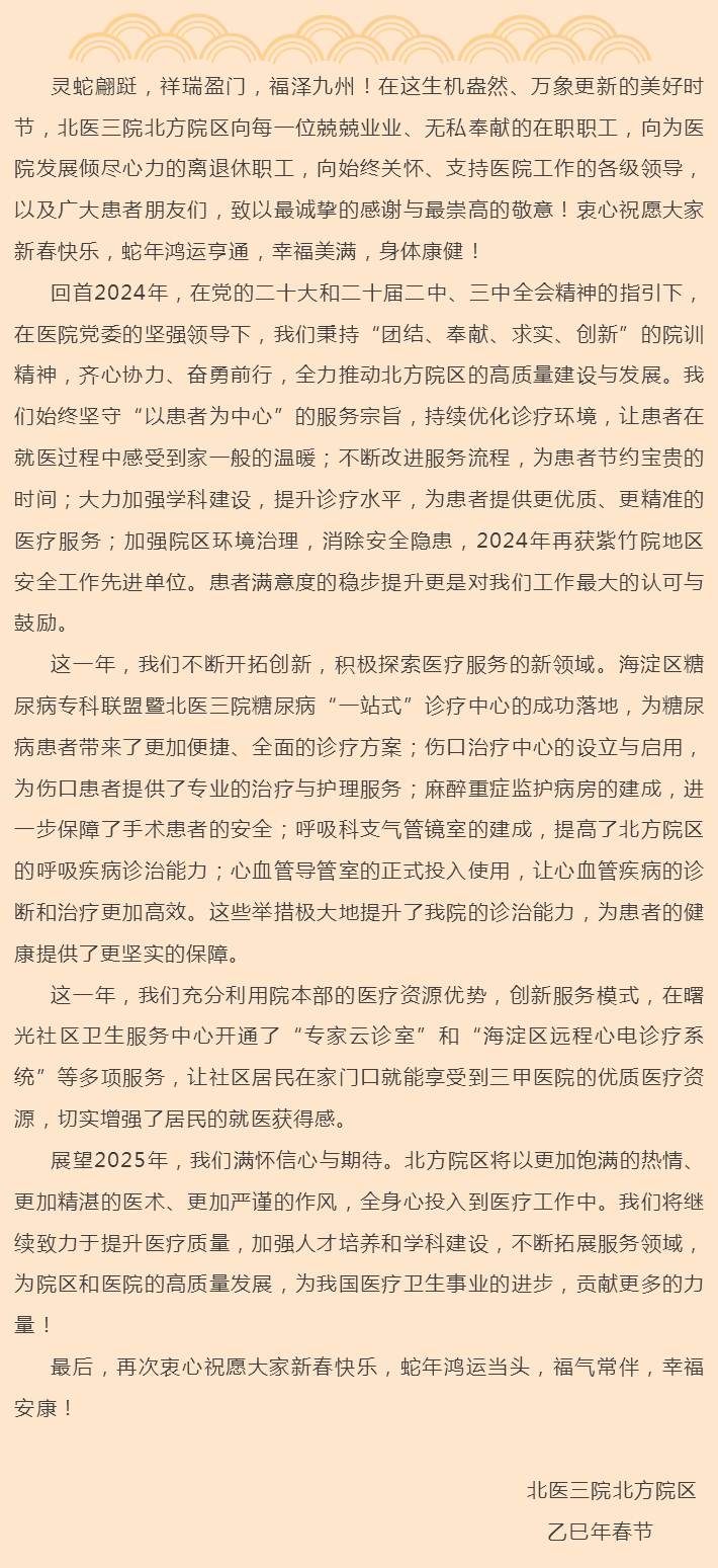 2025 年北医三院北方院区新春贺词