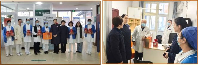 沈宁副院长与领导们亲自走访了二门诊各科室,为工作人员送上节日的礼品和祝福,详细了解了员工们的工作状态和生活情况,在一层服务台,询问了工作内容假期安排等,并亲手给员工们送上慰问品,祝福每位员工新春快乐,鼓励大家在新的一年继续保持奋发向上的精神面貌,积极应对挑战。随后来到二层专家门诊看望了仍坚守在工作岗位的专家毛节明教授,感谢他对于二门诊发展的长期支持,在儿科,看望了仍在为孩子们的健康辛苦忙碌的医务人员,之后在三层中医诊区,详细了解了中医科诊区改造后的情况及目前发展状况,并与员工们亲切合影。