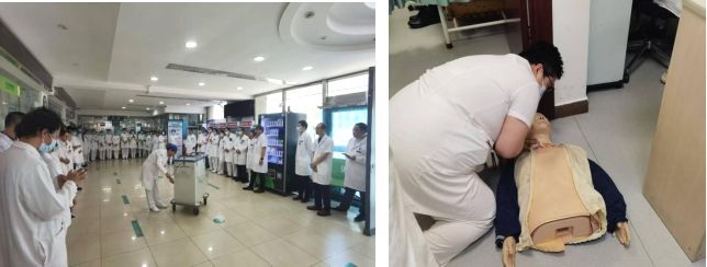 二门诊长期注重急救能力的培训和流程的优化管理,针对不同的科室、点位制定急救流程,并在吴晓静护士长、高延秋急救组长的组织下反复进行全员培训与急救演练。