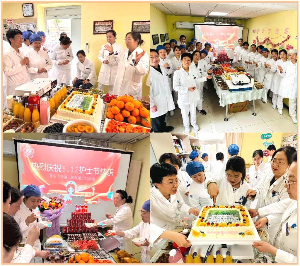 今天护士姐妹们又一次团聚在自己的节日里,在郭秀军主任带来的美丽花束及祝福中,在李磊副主任的香甜巧克力中,党支部书记兼工会组长赵星星大夫为大家分切了她精心准备的别样节日蛋糕,桌上呈现着护理组老师们各自亲手准备的菜品,有土豆沙拉、寿司、大拌菜,还有地方特色菜,辣椒炒面,孜然羊肉,香酥鸡等等,色香味俱全,在品尝美食与交流心得的欢快气氛中,我们感慨护理来路的点点滴滴,有初到临床的茫然与忐忑,如今再看工作30年前辈的执着坚守,无论工作和生活都是我们的榜样。三查八对是你们的底色,每一次护理操作的核对执行,只为保障患者的诊疗安全。细致认真是你们的本质。每一句健康行为的嘱托,只为筑牢患者的安全防线。深情守护是你们不变的初心,每一次搀扶与安慰的给予,只为改善患者的就医感受。这就是你们,专业的你、严谨的你,温暖的你最美丽,就像我们始终深信燕尾帽永远是护士心中最美的一顶一样。