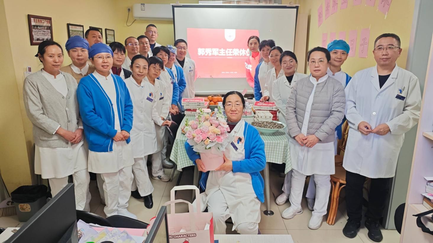 科室里的同事们,悄悄为我准备了一场简洁却满是心意的退休仪式。没有盛大的排场,却处处都是我们共同的回忆。大家围坐在一起,看着一张张岁月图片,分享着那些藏在日常工作和活动里的小趣事,那些一起奋斗闪亮的日子,那些互相扶持的瞬间,此刻都化作了最珍贵的礼物,温暖着我们的心。