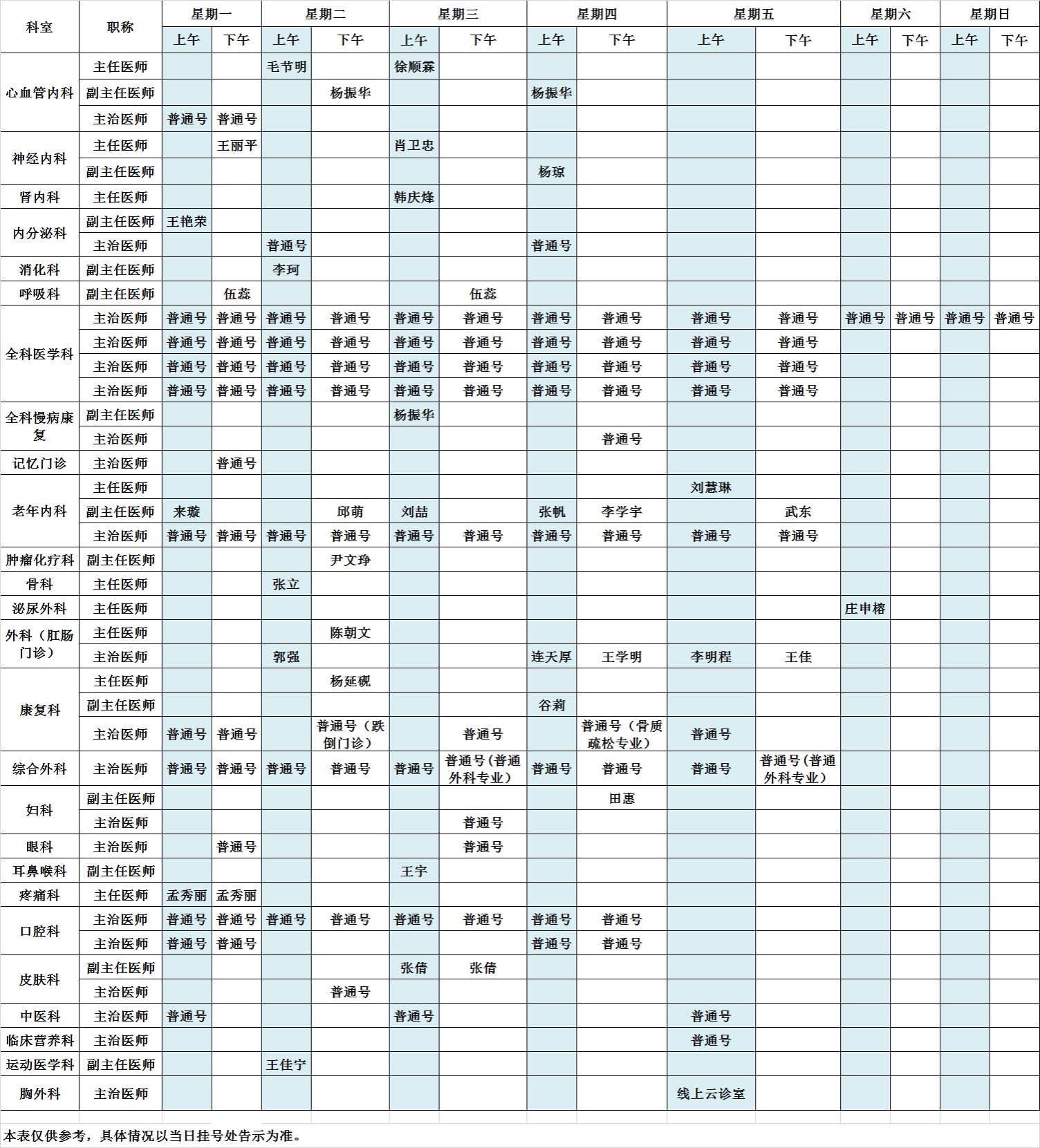 2025年8月北京大学第三医院中央党校院区出诊表