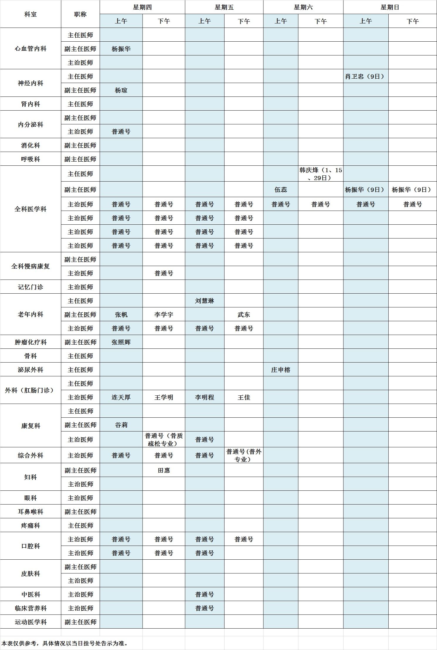 2025年10月北京大学第三医院中央党校院区出诊表