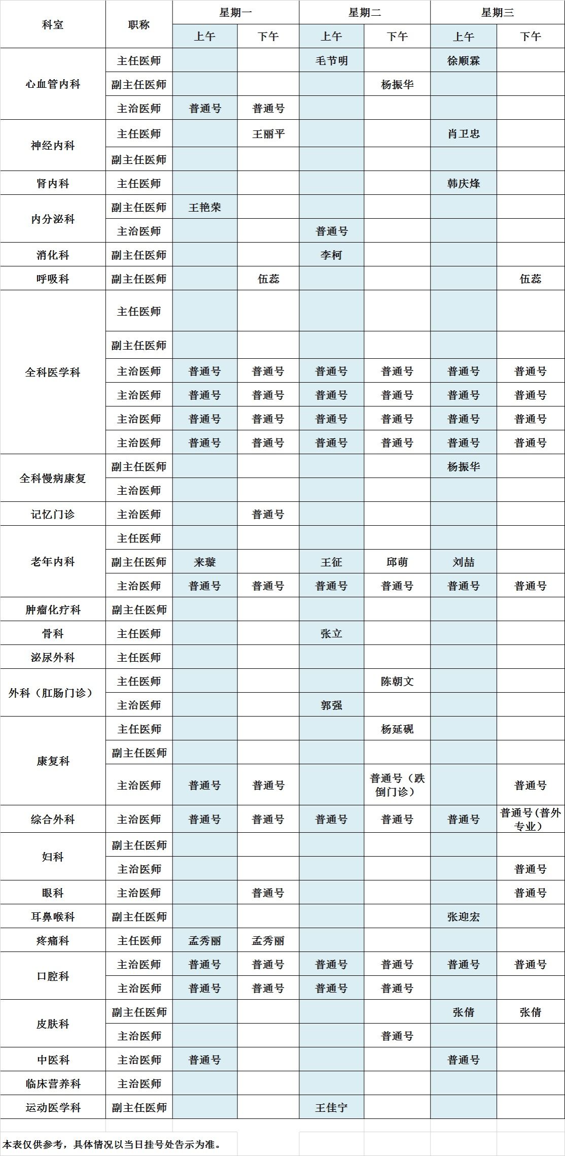 2025年11月北京大学第三医院中央党校院区出诊表