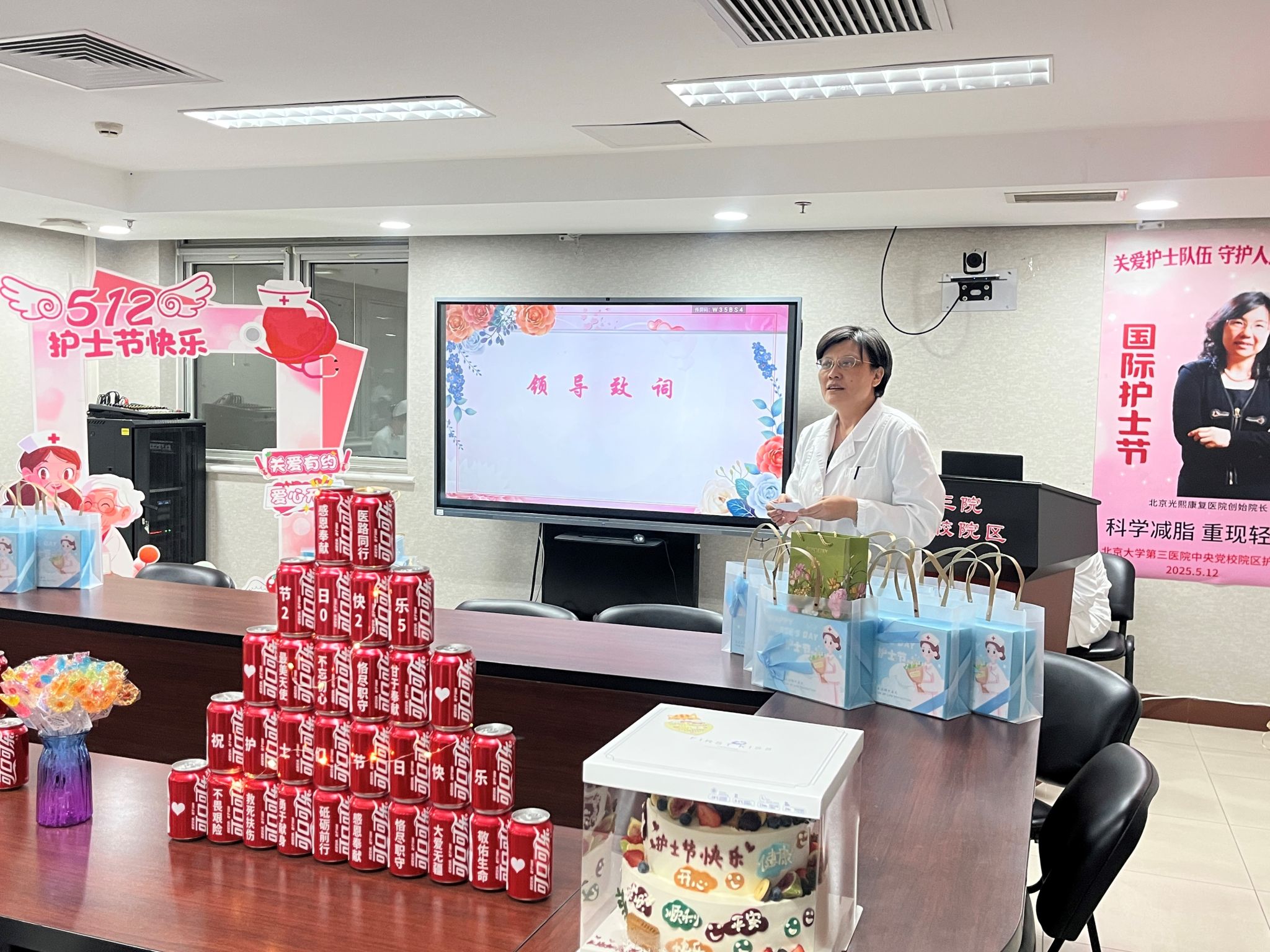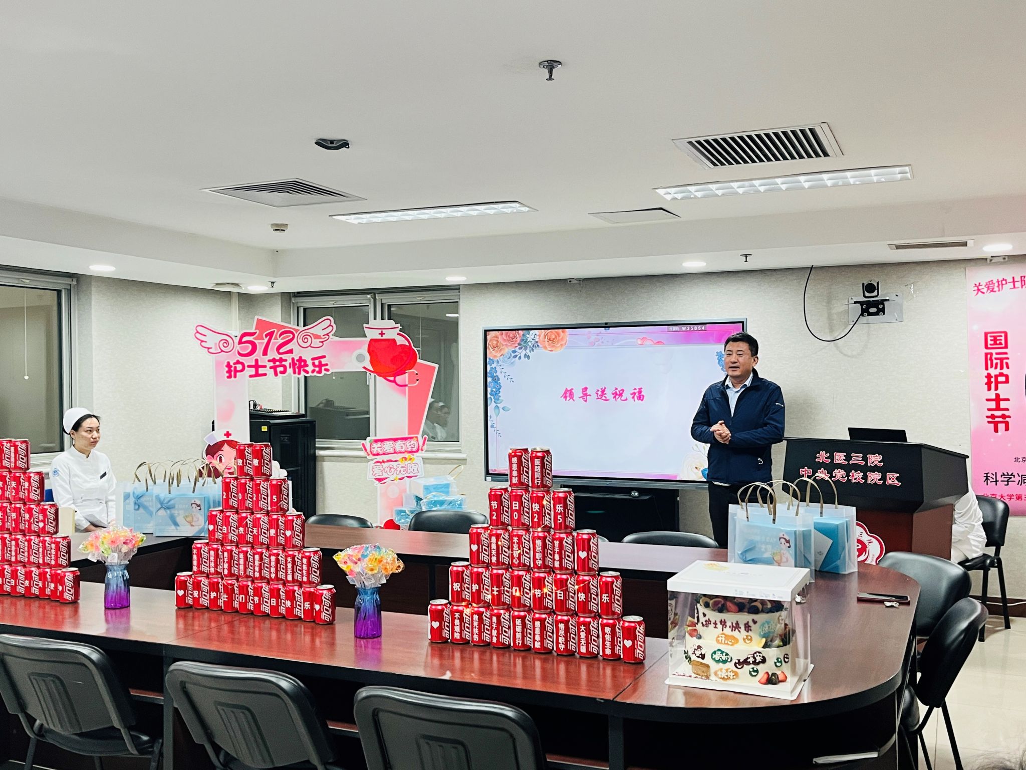 2024年5月12日中午,北京大学第三医院党校院区(以下简称党校院区)隆重举行国际护士节庆祝活动。伍蕊院长、肖卫忠特聘顾问、徐凤奎书记、赵东芳科护士长同护士及各部门代表70余人齐聚一堂,围绕“责任在心,爱在行动”主题,共同致敬护理事业的崇高价值,诠释2025“关爱护士队伍,守护人民健康”大主题。