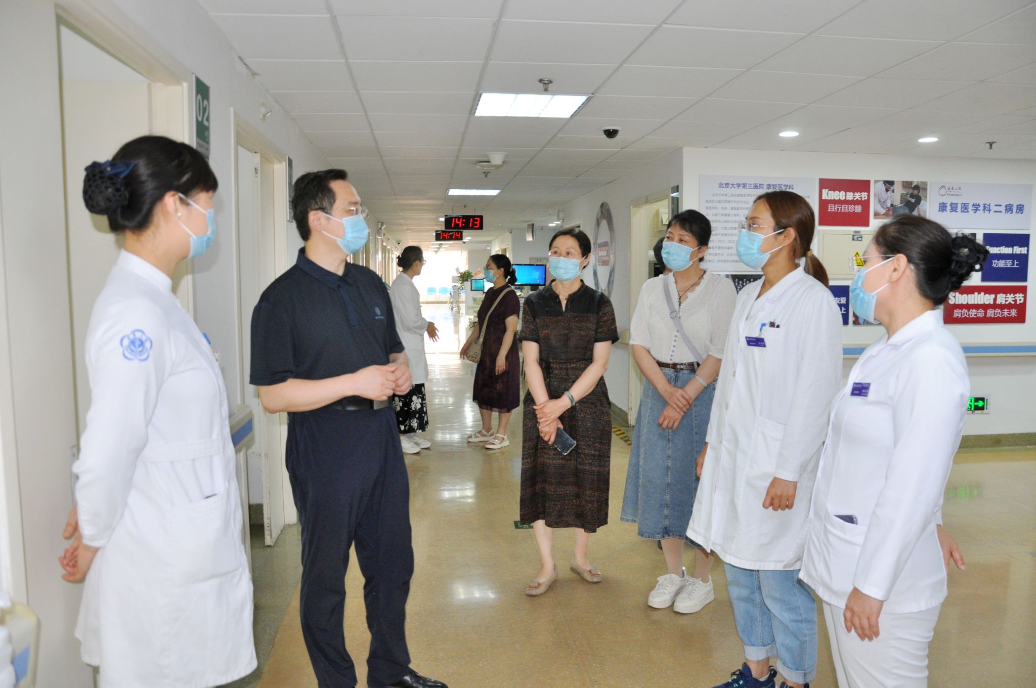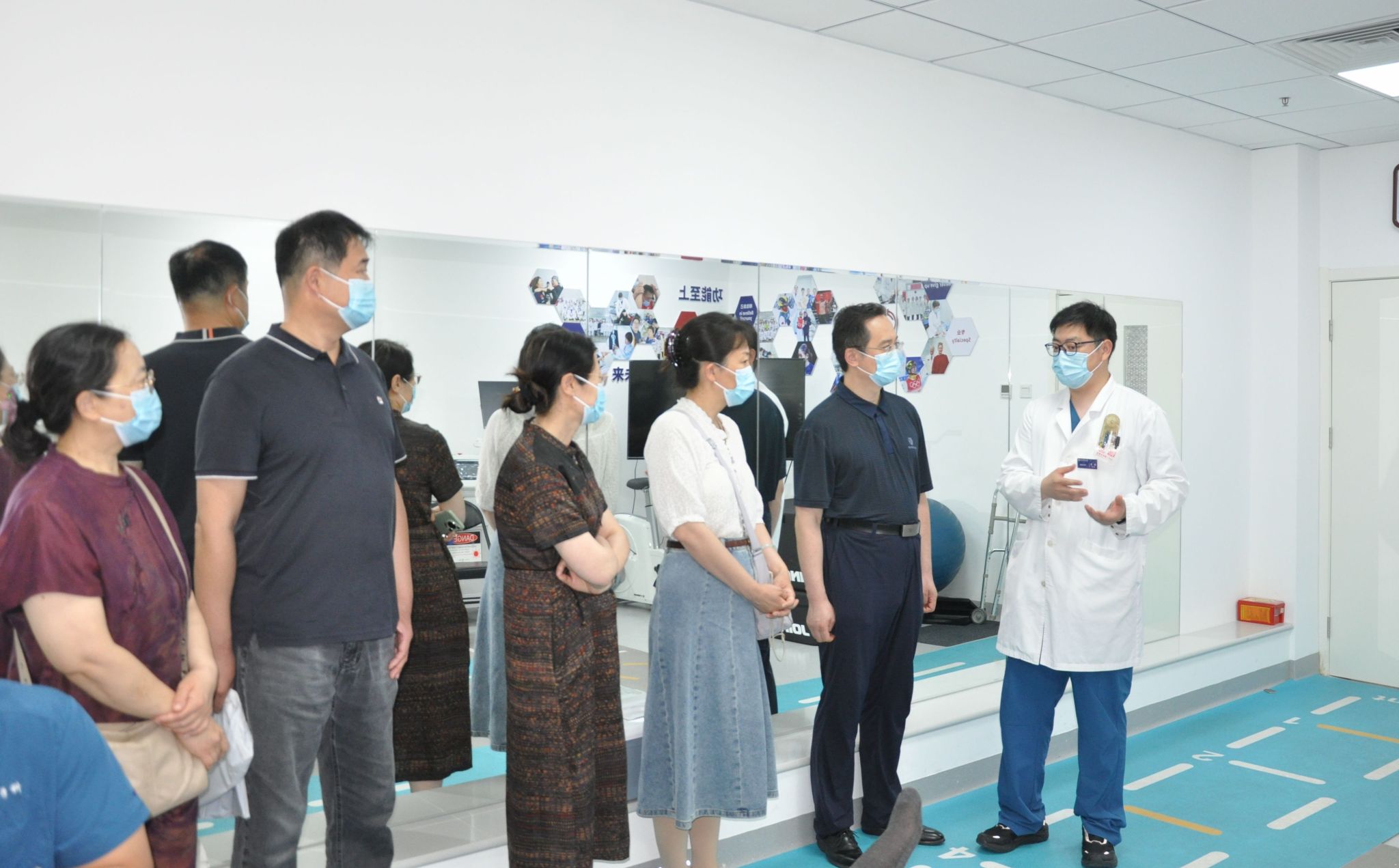 随后,团队考察了综合外科和肛肠诊疗中心、康复医学科及全科医学科病房。在肛肠中心,清华医院外科主任左东说道:“我院曾派医生来进修,获益匪浅,北医三院肛肠专业作为国内领军学科,在疑难病例处理与术式创新上均有较高水准”,他明确表达了未来在院间会诊、建立畅通急难病例转诊方面的合作意向。康复医学科成为双方交流的另一焦点:清华大学医院团队参观二层康复训练大厅时,郭军院长与康复师深入交流,详细了解收治患者范围、康复设备和康复师配备等问题,表示两院的康复中心可开展深度协作和技术互鉴;全科医学科韩悦医师介绍了慢病管理、心脏康复训练以及全科医学科DRGs标准构建等情况,凸显院区在整合型医疗服务上的优势。