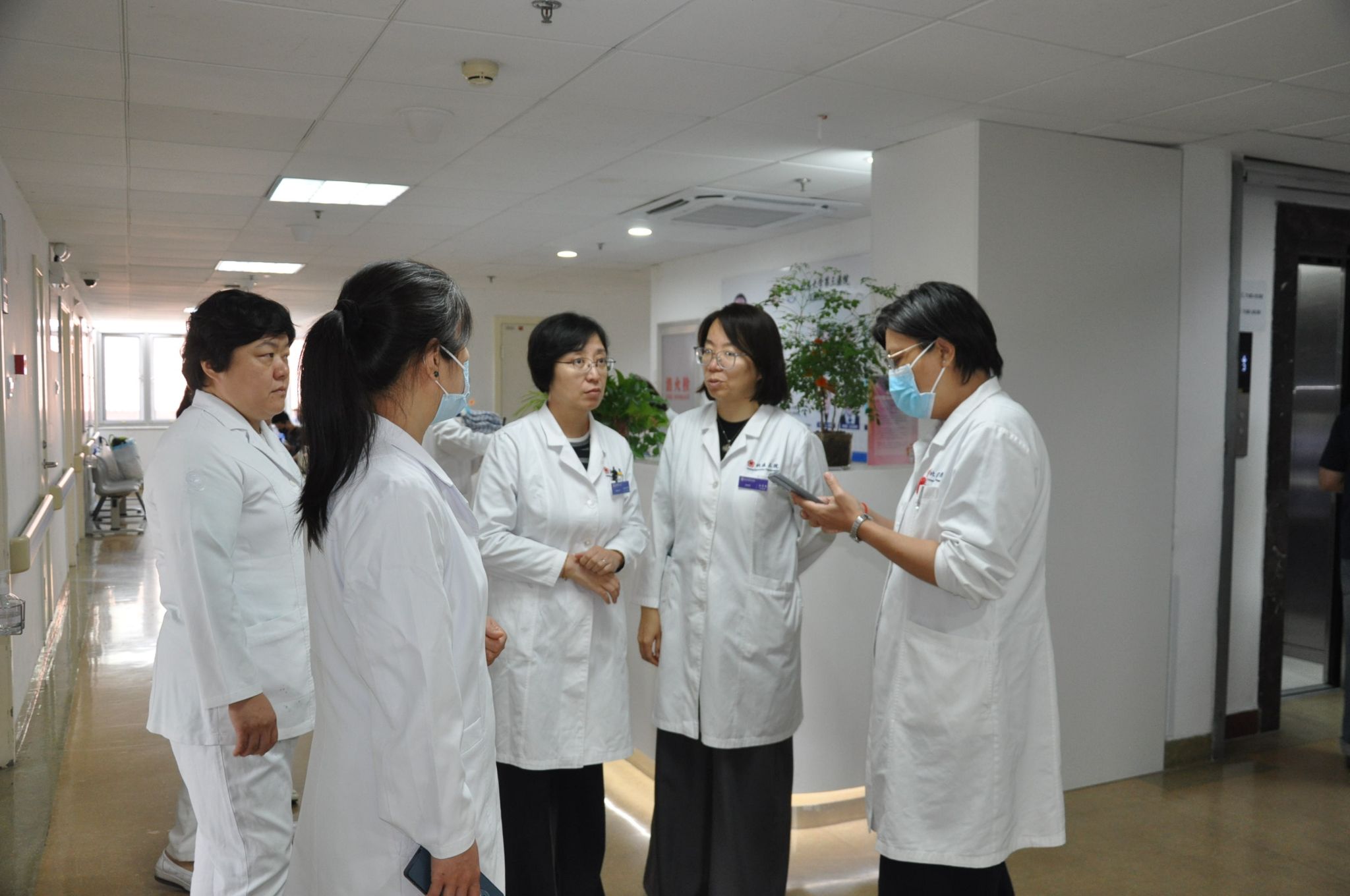 由马院长、海淀北部院区副院长孙阿平、医院感染管理处常务副处长袁晓宁和医务处、护理部、机场院区等相关职能处室领导组成的医疗检查组首先走访了普外四病房,对肛肠专业组在VTE(静脉血栓栓塞症)防治方面的“医护双签”提出表扬。在全科医学科病房,检查组仔细查看了抢救设备的维护保养记录。在老年内科三病房巡查时,检查组在肯定日常管理的同时,也指出了个别VTE高危患者病程记录存在的遗漏,建议进一步强化标识提示,确保防控措施无死角;同时,重点检查了病房交接班记录,再次强调了交接班制度的重要性,对长假期交接班内容清晰、明确提出表扬,建议推广。袁处长在检查中关注细节,建议多重耐药菌患者病室内的隔离衣与健康教育资料应分开悬挂,并指出治疗盘应远离患者物品放置,始终保持清洁状态,以最大限度降低感染风险。