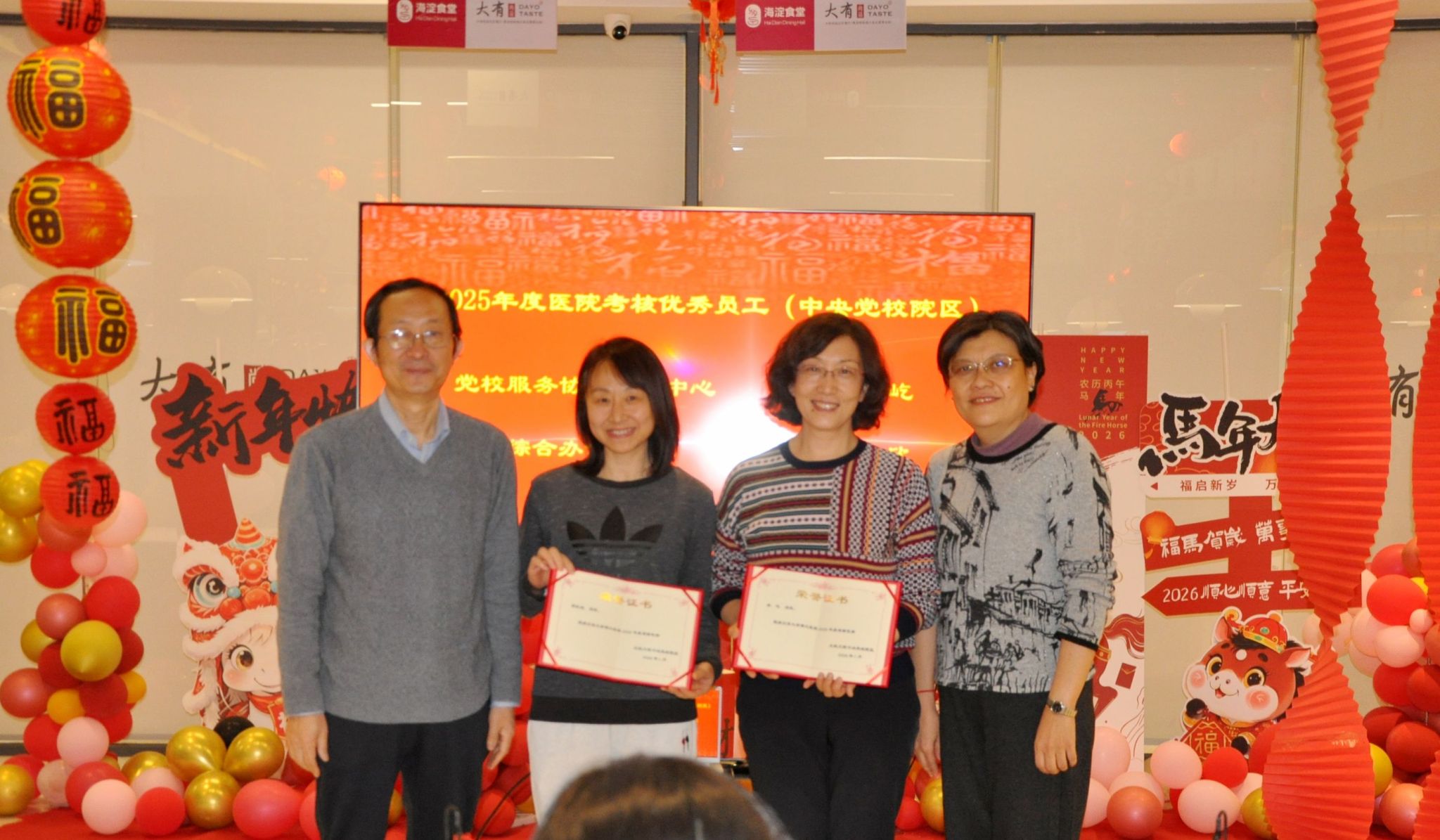 表彰优秀员工环节将会议推向高潮。院区对本年度在医院考核中荣获优秀的员工以及评选出的‘中央党校院区2025年度优秀员工’进行了隆重表彰。他们是在各自岗位上默默奉献、表现突出的员工代表,其敬业精神与专业能力赢得了大家的赞誉。