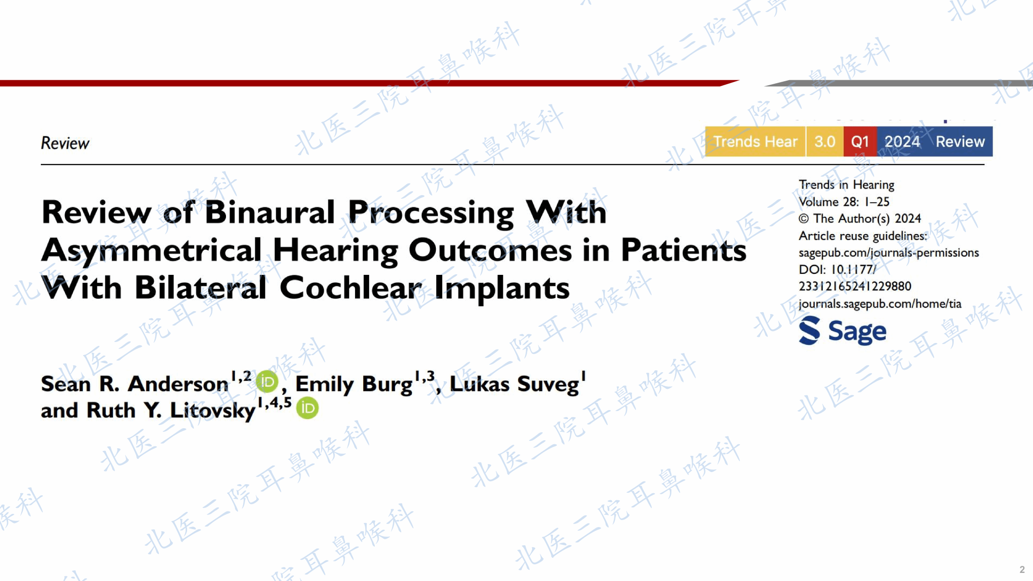 研究生读书报告 — Review of Binaural Processing With Asymmetrical Hearing Outcomes in Patients With Bilateral Cochlear Implants