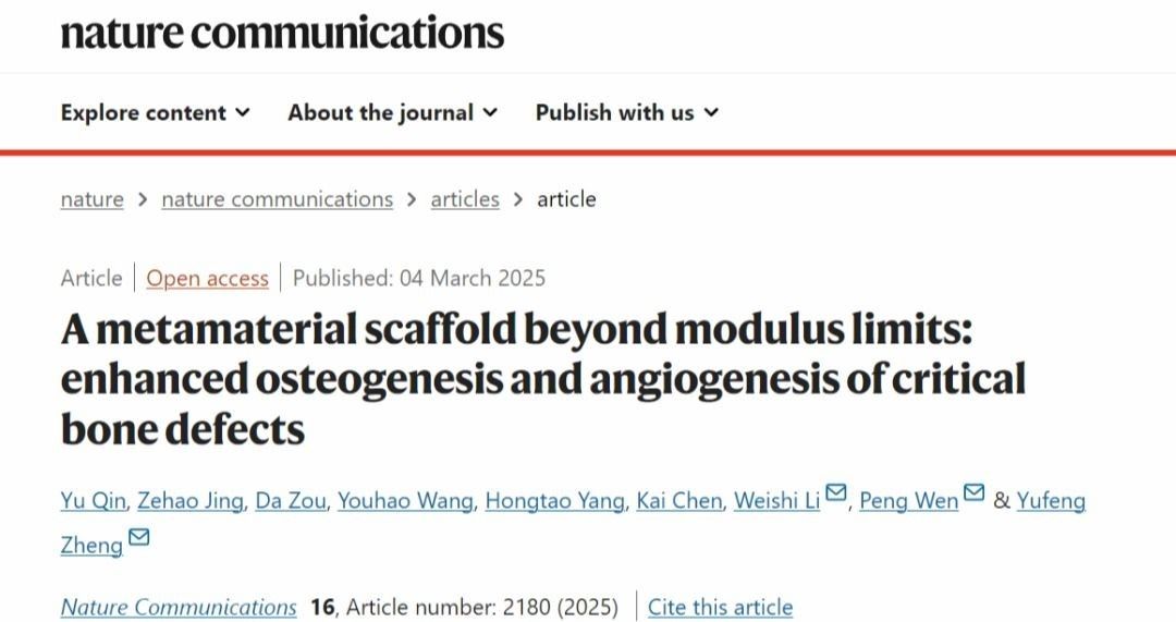 Professor Li Weishi's team from Peking University Third Hospital publishes research on mechanically adaptive bone implants in a Nature sub-journal