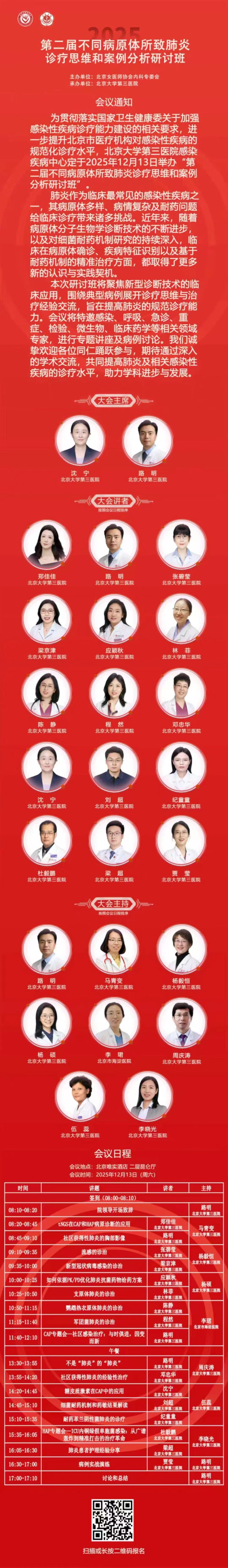 《第二届不同病原体所致肺炎诊疗思维和案例分析研讨班》将于2025年12月13日在北京唯实酒店举办。