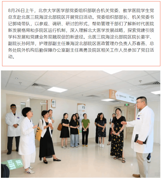 深入一线探运营,精准联动促提升——北京大学医学部党委组织部走进北医三院海淀北部院区开展党日活动