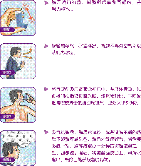 如果出现上述症状,首先吸入短效β2受体激动剂气雾剂,比如万托林,每次2-4喷,如果症状没有得到缓解,20分钟后可重复喷药,重复3次后仍不能缓解,应及时去医院急诊
