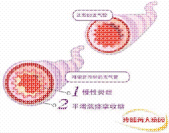 在各种诱发因素的作用下,患者的气道发生炎症性改变,导致气道粘膜肿胀、粘液分泌增多,气流通过受限,从而发生喘息。