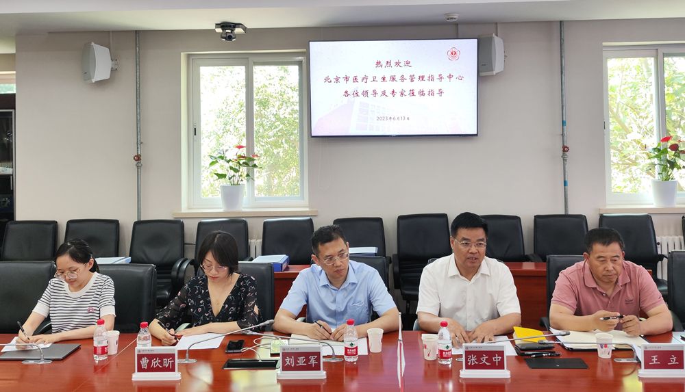 2023年6月13日下午,北京市医疗卫生服务管理指导中心张文中主任、王立副主任等一行5人来我院,就北京市级医疗质量控制和改进中心工作情况进行调研。我院副院长、北京市人类辅助生殖技术质控中心主任李蓉,麻醉科主任、北京市临床麻醉质控中心主任郭向阳,北京市药学质控中心主任翟所迪,药剂科副主任、北京市药学质控中心副主任杨毅恒,职业病科主任、北京市职业健康检查、职业健康监护质控中心主任关里,康复医学科主任、北京市康复医疗质控中心主任崔国庆,医务处处长、北京市互联网诊疗质控中心副主任胥雪冬,医务处质控办主任董书,以及各质控中心秘书和相关工作人员参加调研会。