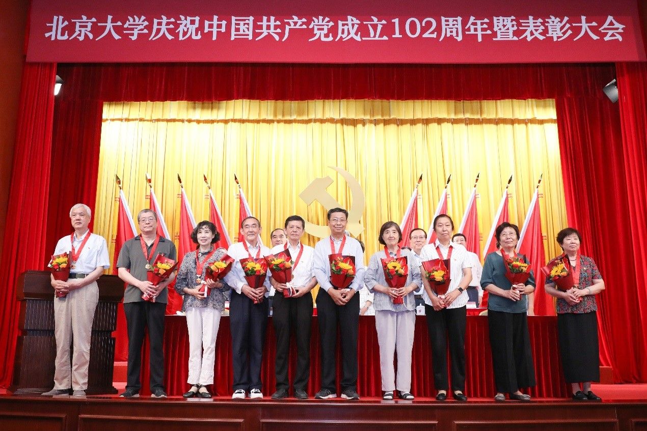 2023年6月30日上午,北京大学“学深悟透新思想 踔厉奋发新征程”庆祝中国共产党成立102周年暨表彰大会在北京大学办公楼礼堂举行。会上,学校党委对优秀共产党员、优秀党务工作者和先进党组织进行了表彰,为“光荣在党50年”老党员颁发了纪念章。