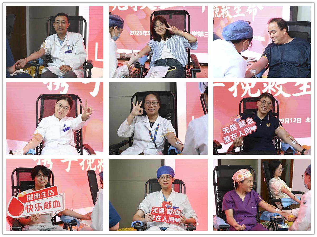 滴滴热血,传递着奉献的赤诚;脉脉温情,守护着生命的期盼。2025年9月12日上午,北医三院172名医务人员无偿献血37200毫升。此次献血活动得到了全院各科室、分院区医务人员的积极响应,大家踊跃报名,以实际行动守护生命,用滴滴热血生动诠释了“医者仁心”的深刻内涵。