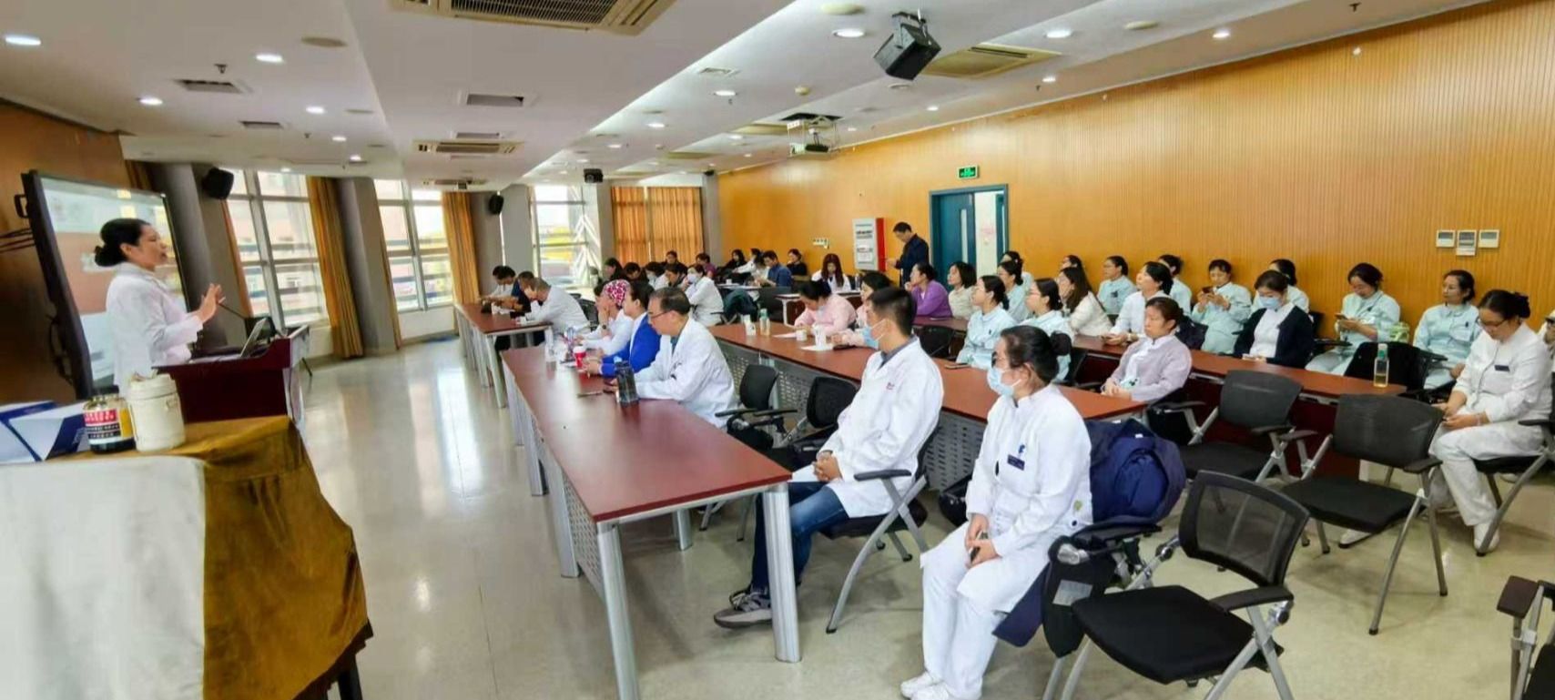 11月11日,内分泌科联合护理部举办了糖尿病专科联络员培训,课程聚焦低血糖的护理与血糖监测手段,提升了护士对糖尿病护理的专业能力,使她们在全院血糖管理工作中发挥更大作用,40余名联络员参加了培训。同时,内分泌科工会小组与医院工会联合启动了“糖控体重,健康纤行”职工体重管理精品活动,通过动态血糖监测、科普知识分享与同伴激励等方式,开展为期一个月的体重管理活动,目前已吸引50余名职工踊跃报名参与。