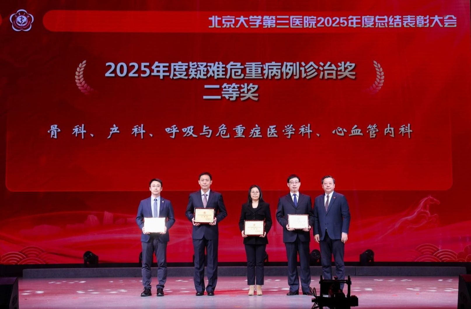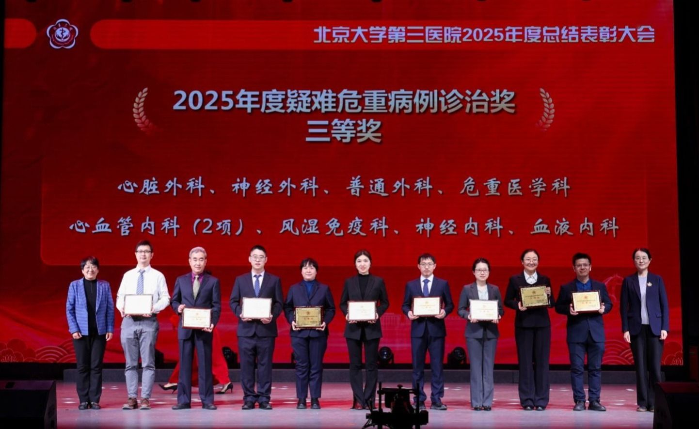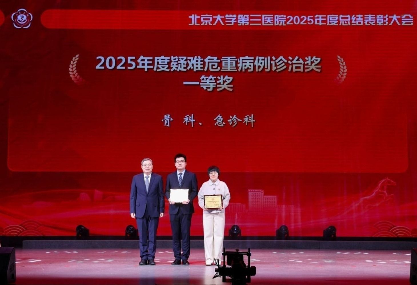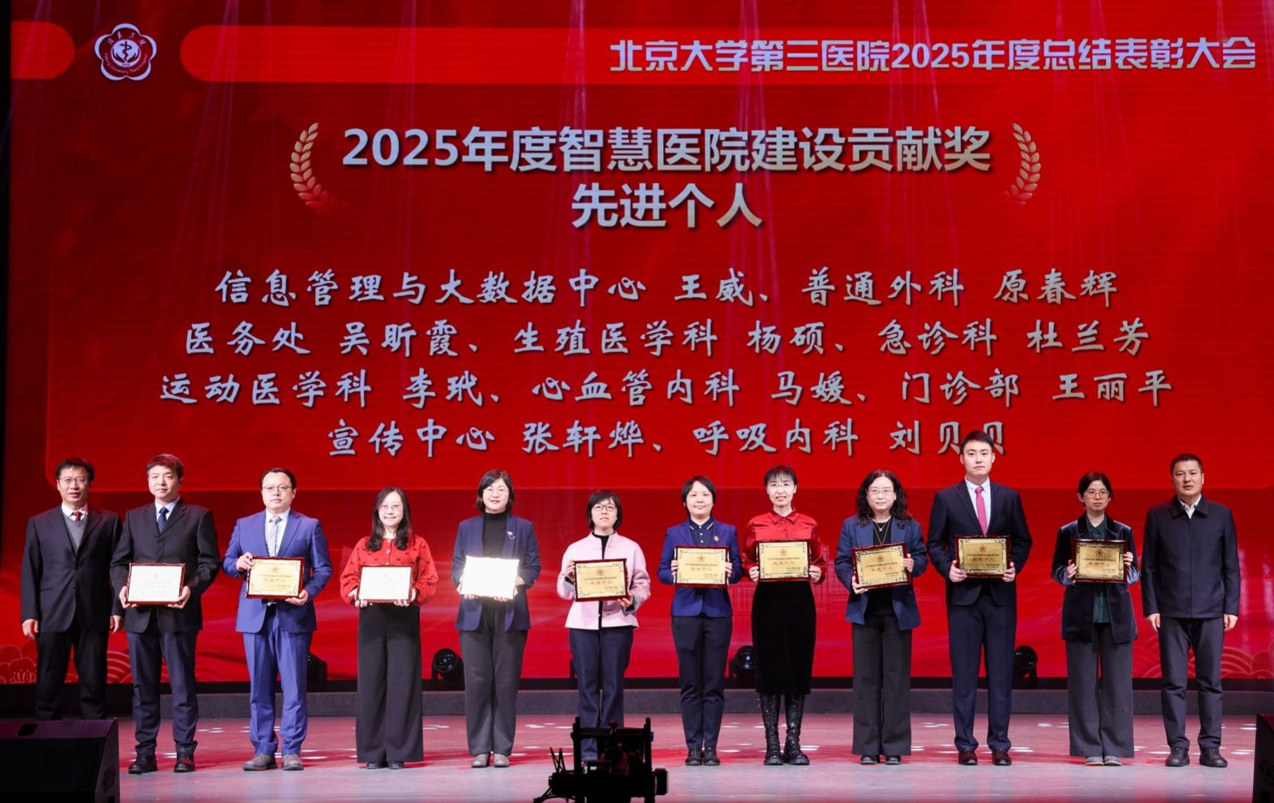 银蛇摆尾辞旧岁,金马扬蹄踏春来。2026年1月16日下午,北京大学第三医院2025年度总结表彰大会在北京大学医学部会议中心礼堂召开。北京大学医学部主任、中国工程院院士乔杰,北京大学工会常务副主席张宝岭,北京大学医学部副主任王嘉东、唐熠达,医学部党委副书记、工会主席朱树梅,花园路街道党工委书记赵志辉,海淀区市场监管局党组书记、局长聂俊杰,花园路街道办副主任王进等领导和嘉宾莅临。