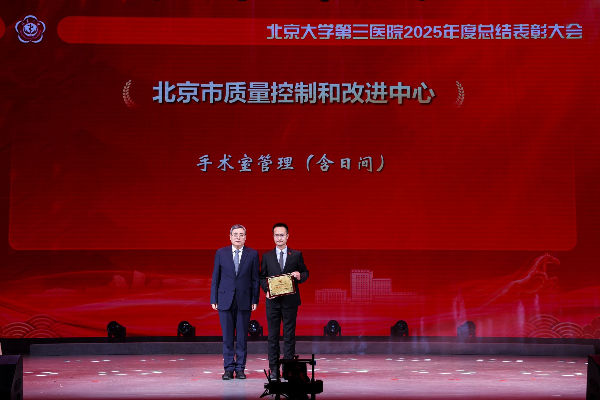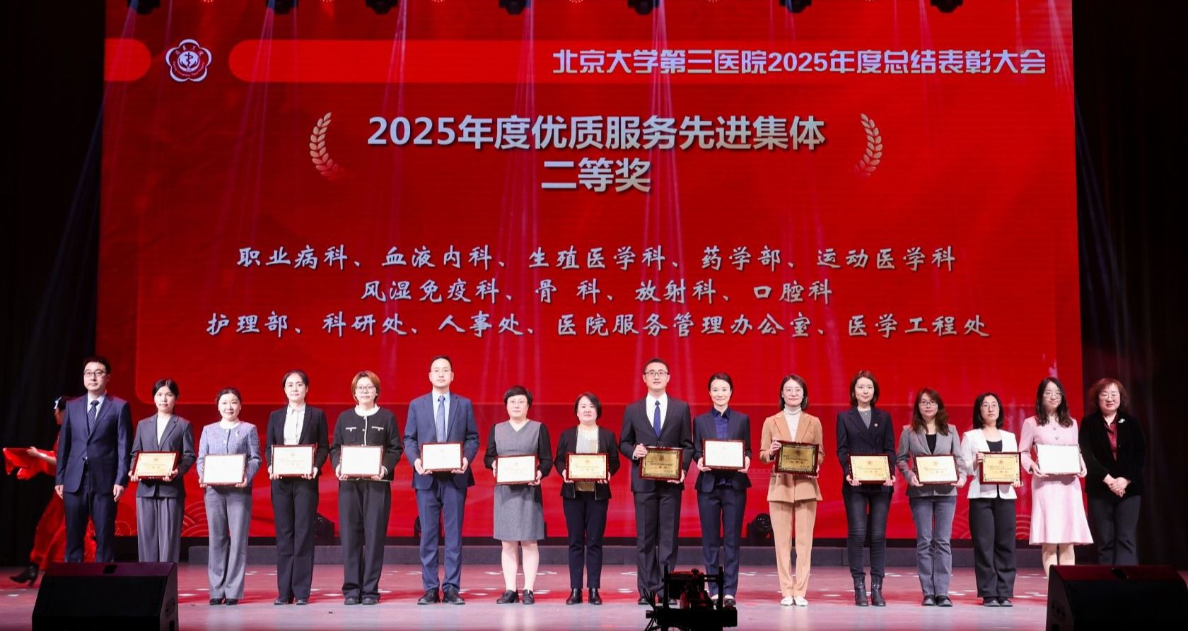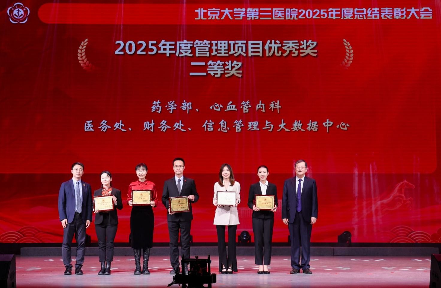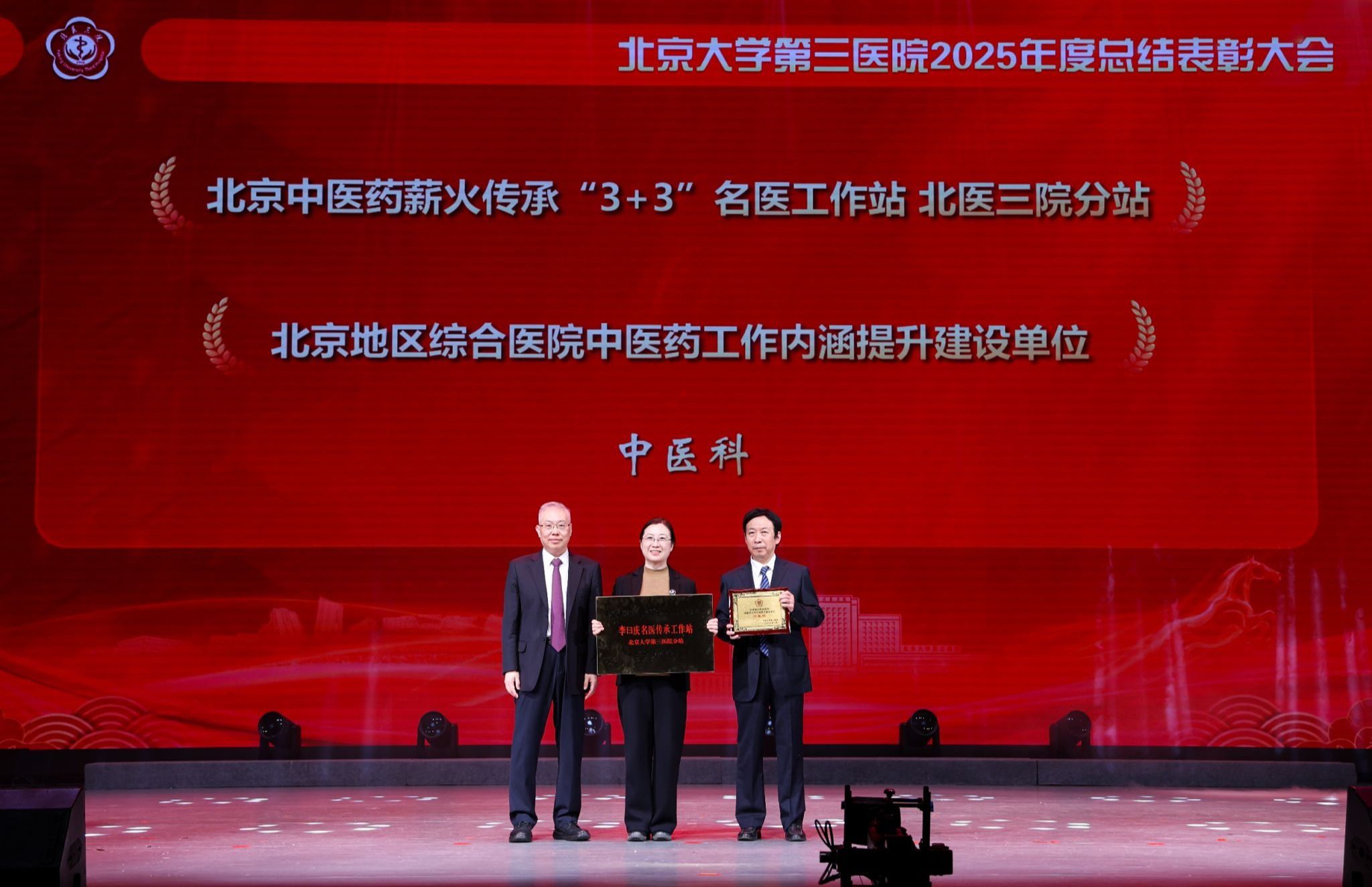 银蛇摆尾辞旧岁,金马扬蹄踏春来。2026年1月16日下午,北京大学第三医院2025年度总结表彰大会在北京大学医学部会议中心礼堂召开。北京大学医学部主任、中国工程院院士乔杰,北京大学工会常务副主席张宝岭,北京大学医学部副主任王嘉东、唐熠达,医学部党委副书记、工会主席朱树梅,花园路街道党工委书记赵志辉,海淀区市场监管局党组书记、局长聂俊杰,花园路街道办副主任王进等领导和嘉宾莅临。