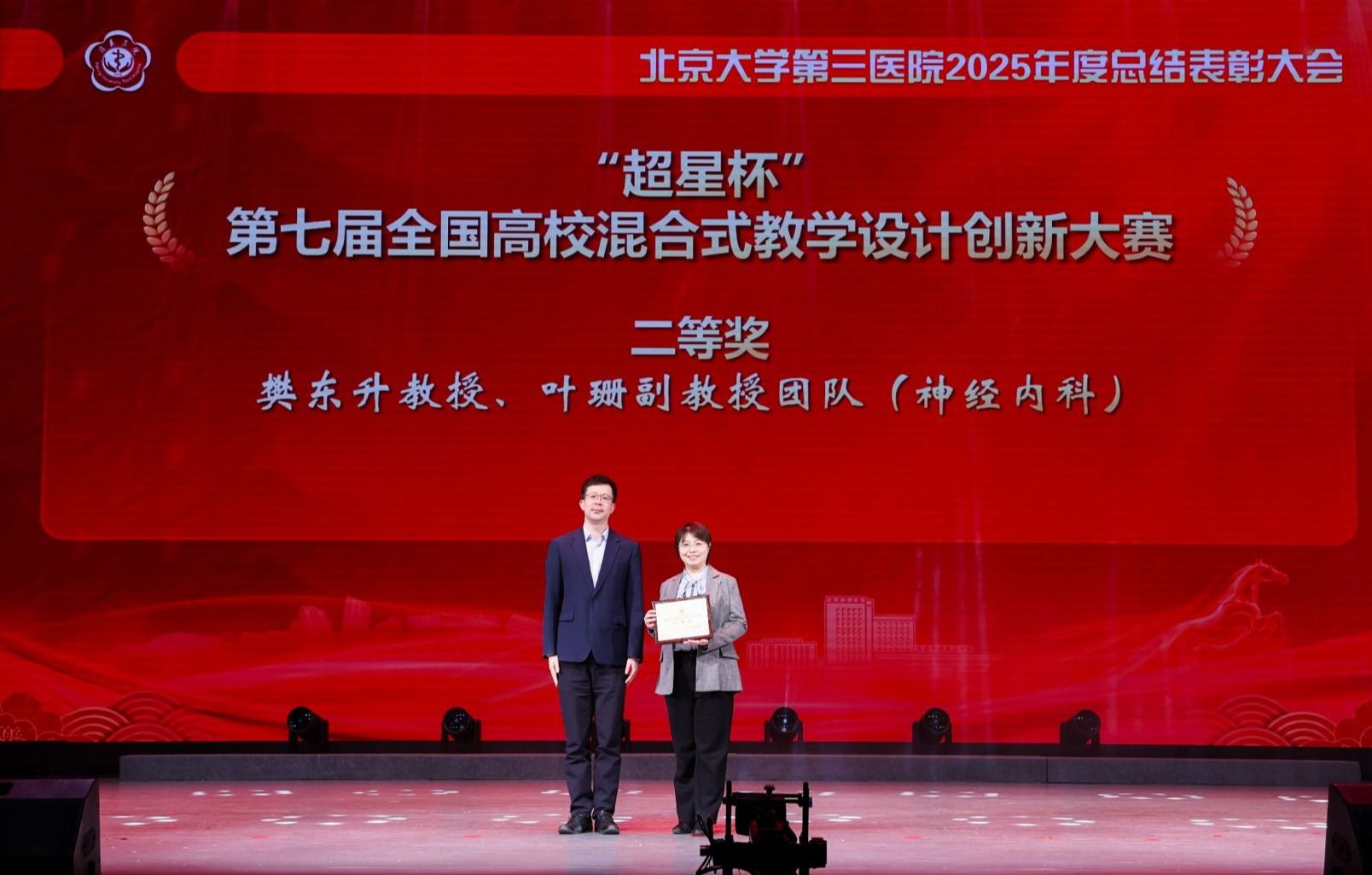 北医三院始终坚持立德树人、守正创新,推动医教协同与教学改革,着力培养具有家国情怀、全球视野与前沿创新能力的医学人才,为服务国家发展和人类健康事业提供坚实人才支撑。神经内科樊东升教授、叶珊副教授团队获得“超星杯”第七届全国高校混合式教学设计创新大赛二等奖。妇产科陈扬团队获得第五届北京高校教师教学创新大赛优秀奖。眼科范翔团队获得第五届北京大学教师教学创新大赛一等奖。神经内科赵晨等获得北京高校第十四届青年教师教学基本功比赛(医科类)一等奖;药学部王丽嫄等获得二等奖。药学部杨璨羽等获得北京大学第二十五届青年教师教学基本功比赛(医科类)一等奖。《医魂·仁术·求索——三维融合驱动医学卓越人才培养新生态的探索与实践》获得北京大学教学成果奖一等奖;《基于“双师教学基础、四个结合原则、六个聚焦导向”理念的肌骨系统课程建设》与《融合式“人工智能+教育”在眼科住院医师规范化培训以及显微培训平台中的应用》获得二等奖。乔杰团队获得北京大学优秀研究生指导教师团队奖。心血管内科韩江莉、教育处李艾为等分别获得北京大学教学优秀奖、教学管理奖等奖项。