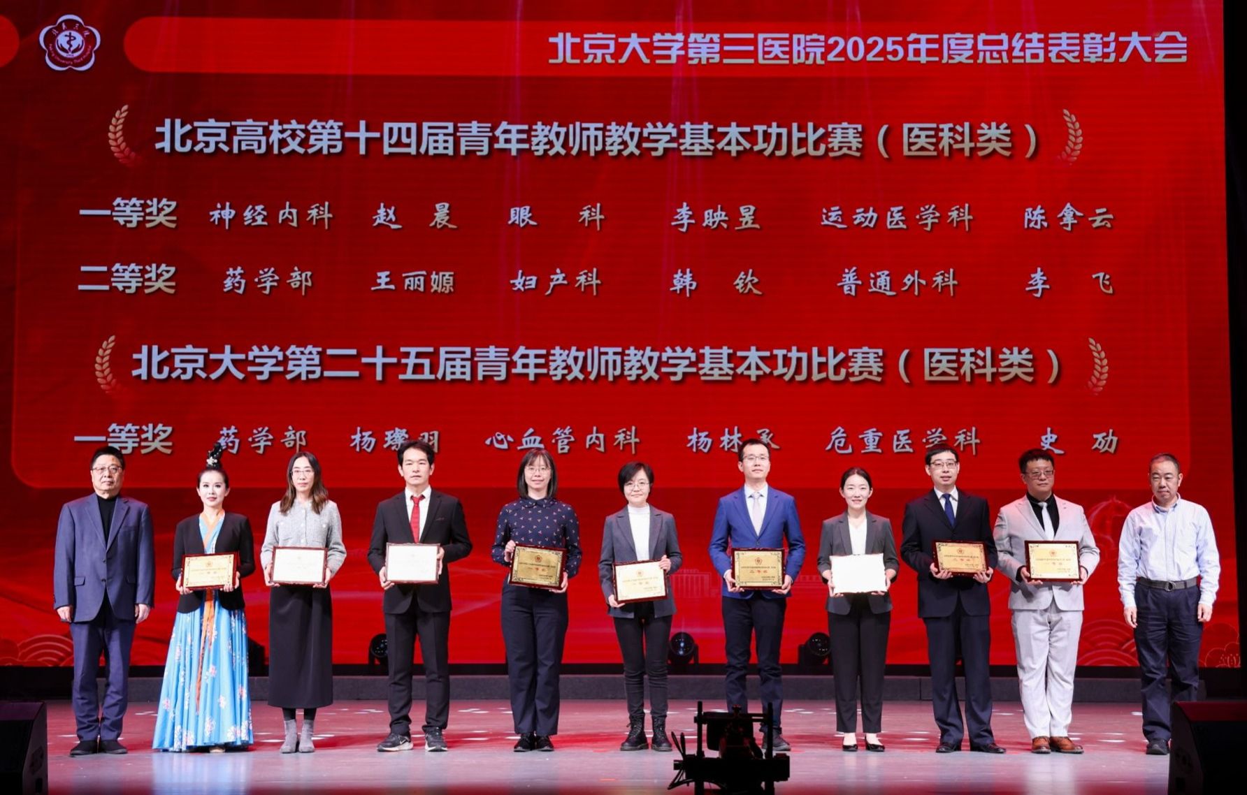北医三院聚焦影响人民健康的重大疾病和主要问题,持续推进学科建设与服务质量提升。通过不断加强医疗安全管理,持续深化质量内涵建设,守护患者生命安全;着力提升疑难危重症、罕见疾病诊疗水平,推动技术创新,中西医协同发展,为人民群众提供更高水平的医疗服务。麻醉科、产科获得国家临床重点专科建设项目奖。中医科获批北京中医药薪火传承“3+3”名医工作站北医三院分站及北京地区综合医院中医药工作内涵提升建设单位。北医三院获批北京市手术室管理(含日间)质量控制和改进中心主任委员单位。药学部、检验科获得医疗安全管理一等奖;普通外科等获得二等奖;产科等获得三等奖。骨科、急诊科获得疑难危重病例诊治一等奖;骨科等获得二等奖;心脏外科等获得三等奖。生殖医学科、血液内科获得技术创新一等奖;骨科等获得二等奖;运动医学科等获得三等奖。骨科王奔、心血管内科邓湘宁等12位青年医师(药师)获得优秀青年医师(临床药师)奖。
