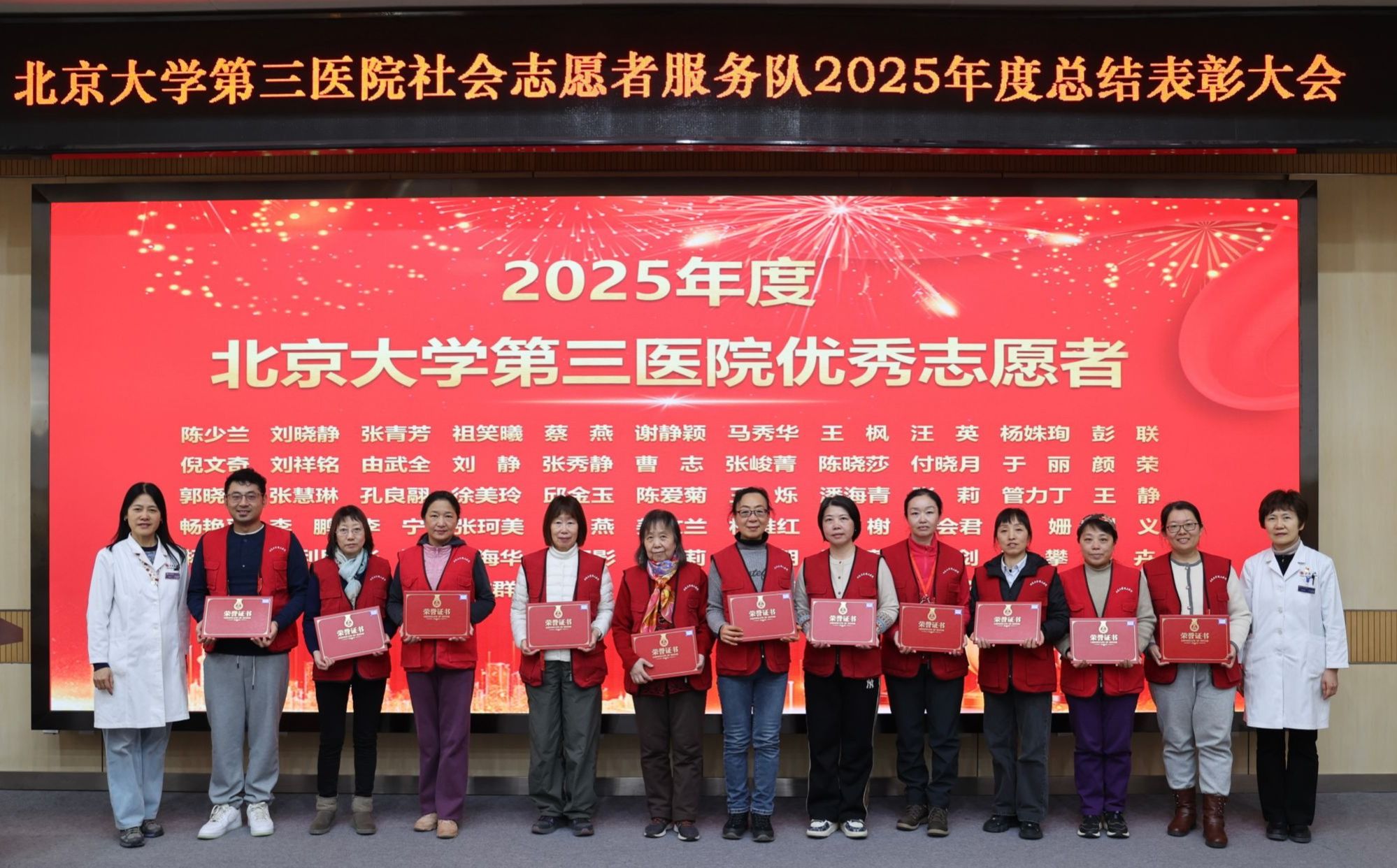 为大力弘扬“奉献、友爱、互助、进步”的志愿精神,总结社会志愿服务工作年度成果,2026年1月21日,北京大学第三医院2025年度社会志愿者服务队总结暨表彰大会在健康医学中心楼136会议室举行。