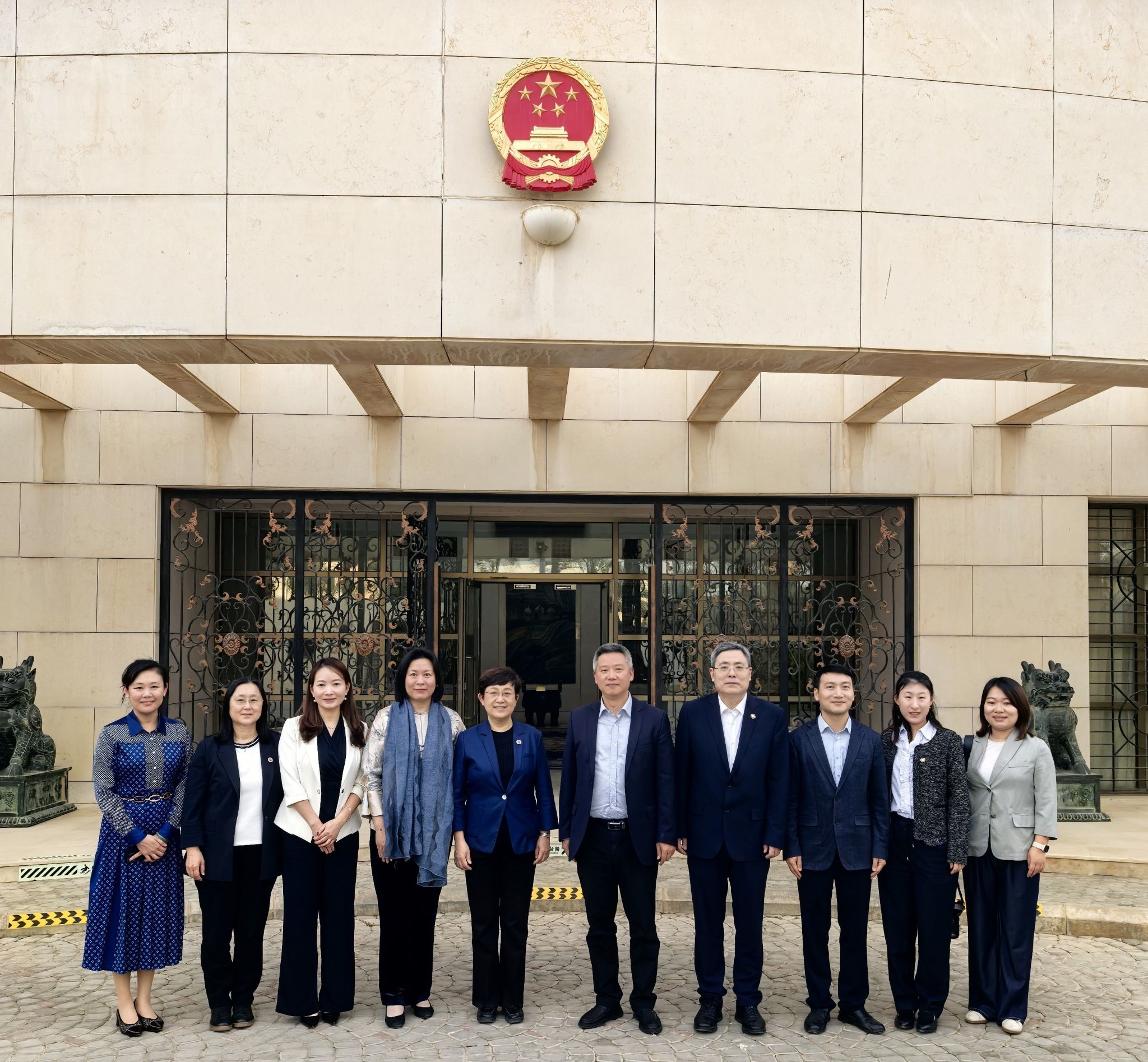 当日下午,代表团拜会中国驻沙特大使馆,与大使馆公使衔参赞马健、经济商务参赞吴杰亲切会面,就如何进一步推动中沙医疗卫生领域的务实合作交换了意见。