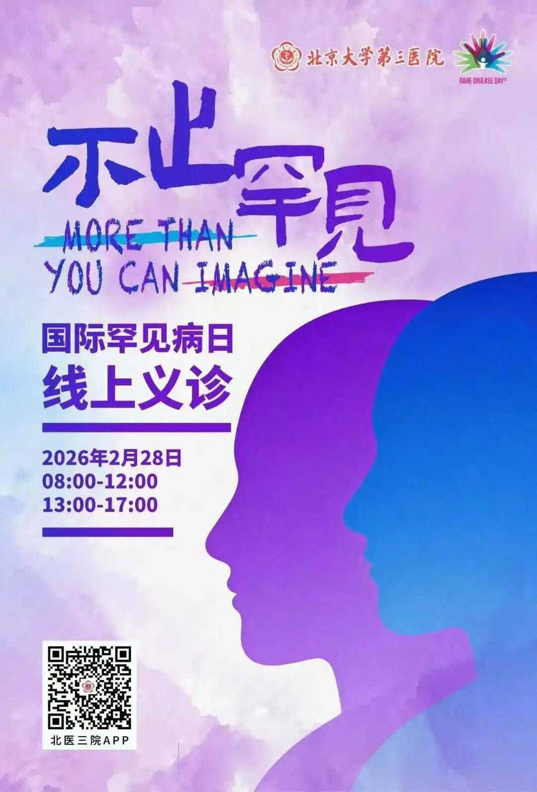 2026年2月28日是第19个国际罕见病日,今年的主题是“不止罕见”,北京大学第三医院举办多场主题活动,以多学科义诊、工作交流、线上问诊等形式,以实际行动关爱罕见病患者群体,展现“国家队”在罕见病防治领域的责任与担当。