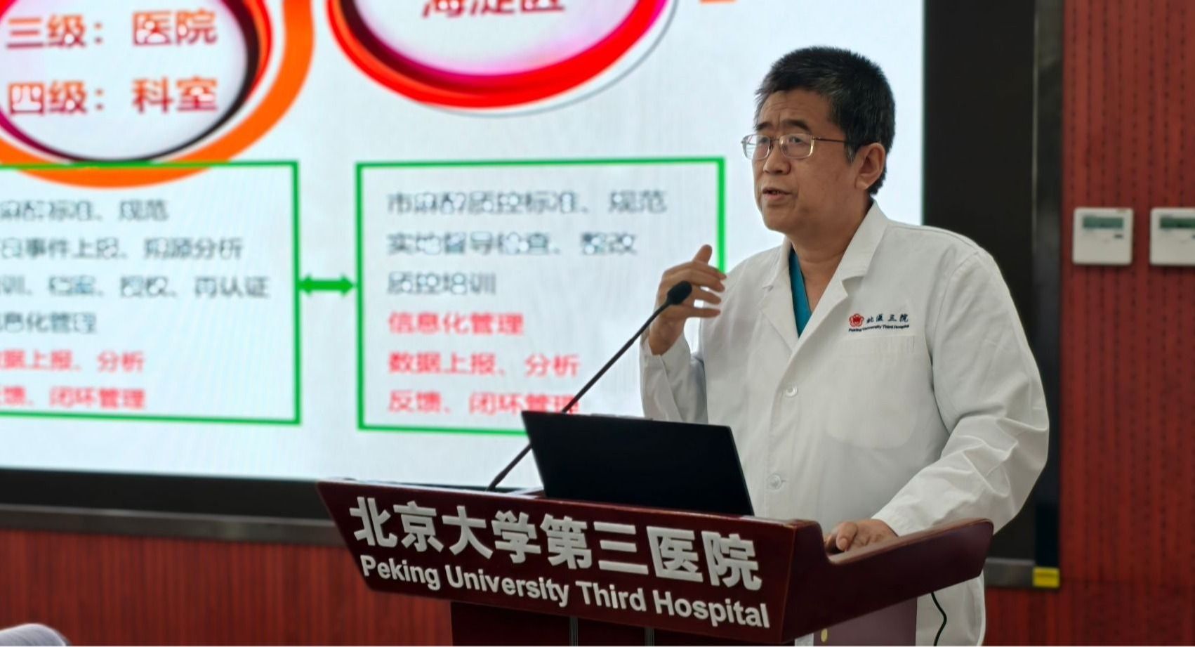 北医三院院长、质控中心主任委员付卫首先致辞。他表示,手术室管理(含日间)质控中心是北医三院承接的第九个北京市级质控中心,这既是荣誉,更是责任。手术室是手术患者医疗安全的核心枢纽,日间手术的快速发展更对手术室管理提出了更高要求。作为主任委员单位,北医三院将充分发挥牵头作用,联合全市专家团队,在质控体系建设、标准制定、指标监测、人员培训和现场督导等方面协同发力,整合既往多个专业质控中心成熟经验,高标准推进中心建设,为提升北京市手术室管理水平提供有力支撑。