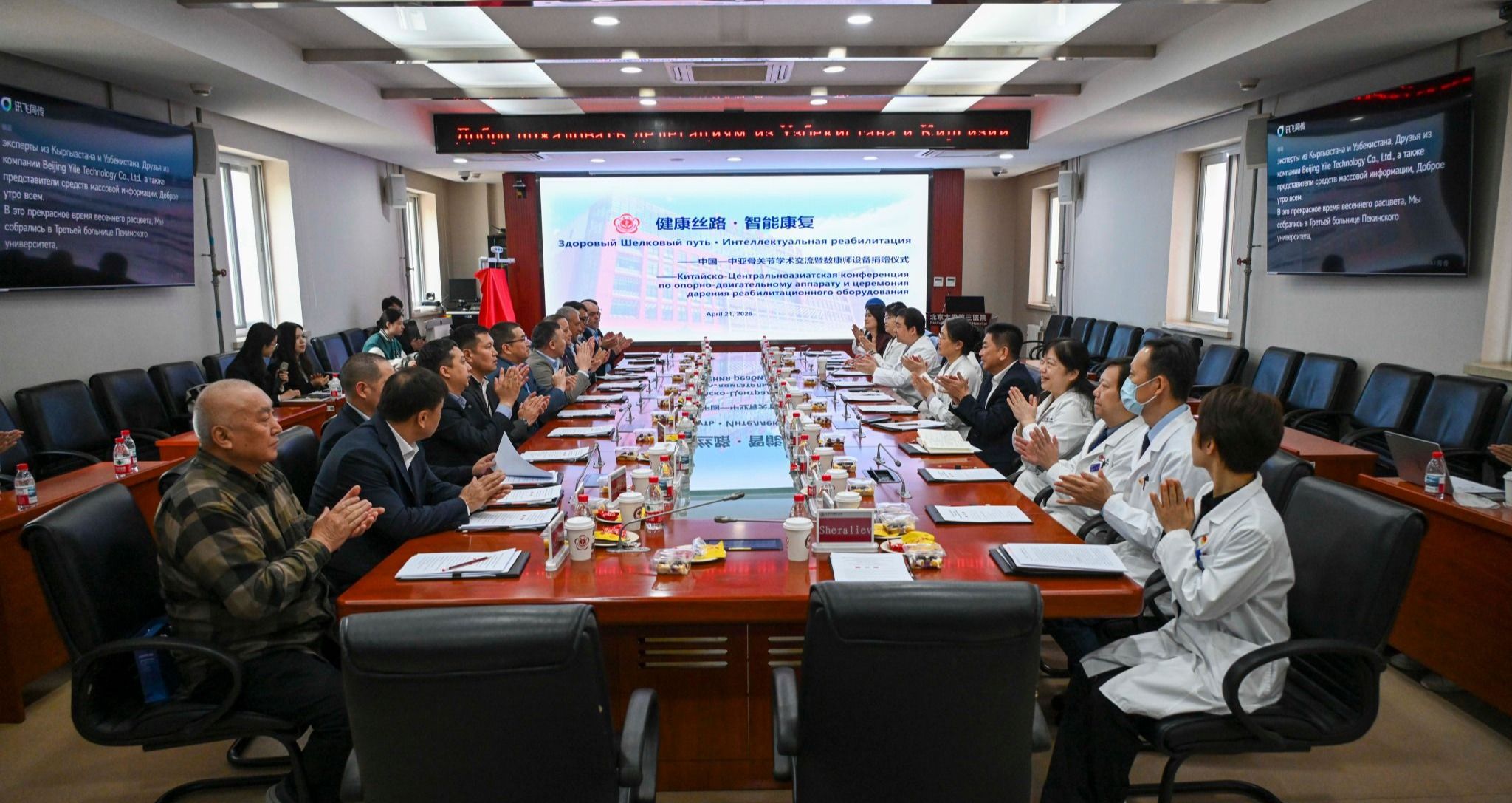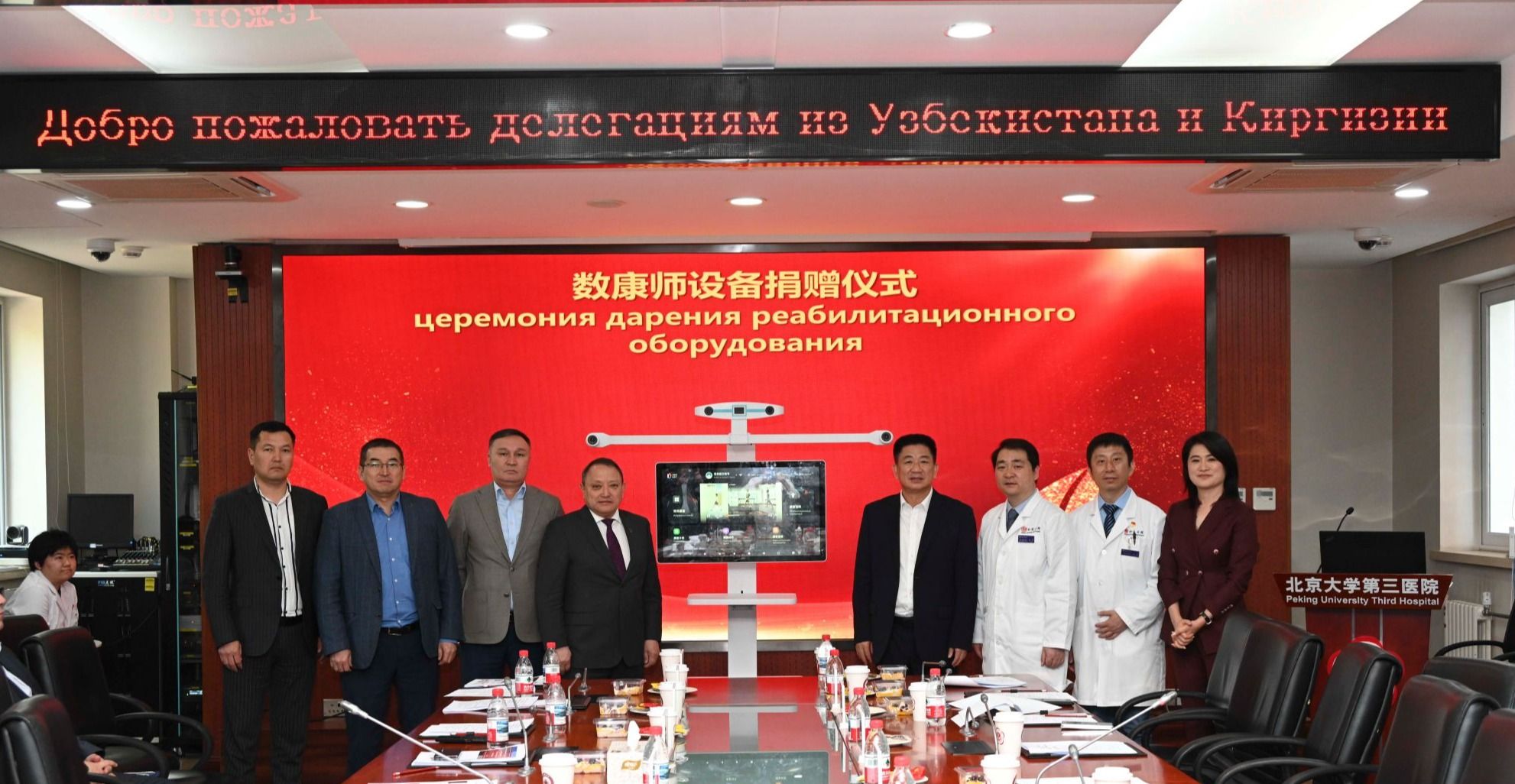 4月21日上午,北医三院向吉尔吉斯斯坦捐赠“数康师”智能康复设备,捐赠仪式在北医三院本部举行。