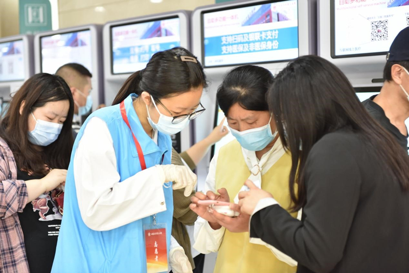 该项目号召职能处室工作人员参与志愿服务,走进一线服务患者,提供工作日到周末不间断服务。特别是在疫情期间,除了保障正常的医院工作,工作人员坚持每天值守岗位,为患者带去温馨的服务,弘扬了志愿精神。同时在服务中以“走动式”的管理方式,及时发现医院服务、就医流程等方面的问题,并上报至相应管理部门,目前已推进了院内数字化服务、医院标识指引以及检查预约、失物招领等工作的优化。在此基础上,鼓励各党支部针对老年患者群体主动开展服务, “智慧就医,精准助老”志愿活动已成为我院特色志愿服务品牌。