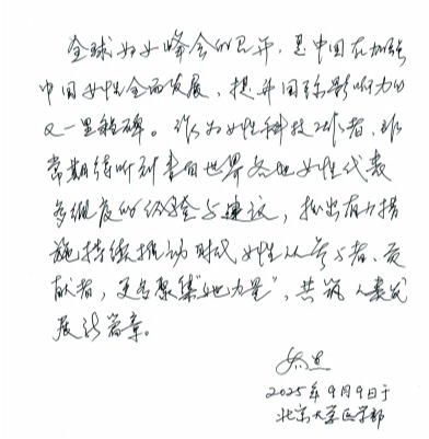 1995年,中国承办了联合国第四次世界妇女大会,会议通过的《北京宣言》和《行动纲领》,为世界妇女描绘平等、发展、和平的美好前景,成为全球性别平等事业的里程碑。30年前,北京见证了世界妇女追求平等的决心。30年后,中国将再次召开全球妇女峰会,各方重聚北京,共商全球妇女事业发展大计。本报即日起推出“我们的盛会·中国故事女主角寄语”栏目,聚焦各行各业的杰出女性,通过一个个奋进故事,生动讲述新时代中国女性的追梦征程,倾听她们对全球妇女峰会的期待和对妇女事业发展的美好展望。