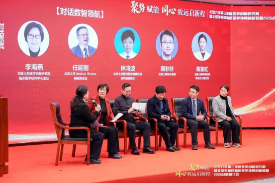 对话数智领航环节,在北京大学公共卫生学院院长、北医三院医学创新研究院临床医学研究中心主任詹思延的主持下,北京大学鄞州数智健康联合研究院副院长林鸿波,北医三院院长助理周非非,北医三院医学创新研究院临床医学研究中心主任李海燕,北京大学Medical Review编辑部主任任延刚,北医三院科研伦理综合办公室主任陈亚红围绕“从技术突破到临床落地,实现自主创新转化,如何破解数据、伦理与场景适配的三重挑战”主题展开分享。各位专家纷纷表示,需推动数据、场景与伦理的协同,方可破局。高质量、全周期的数据是基础;技术必须与真实临床场景深度适配,解决实际痛点;同时需构建贯穿研发全链条的伦理与规范框架,以保障创新安全、合规落地,最终实现患者获益。
