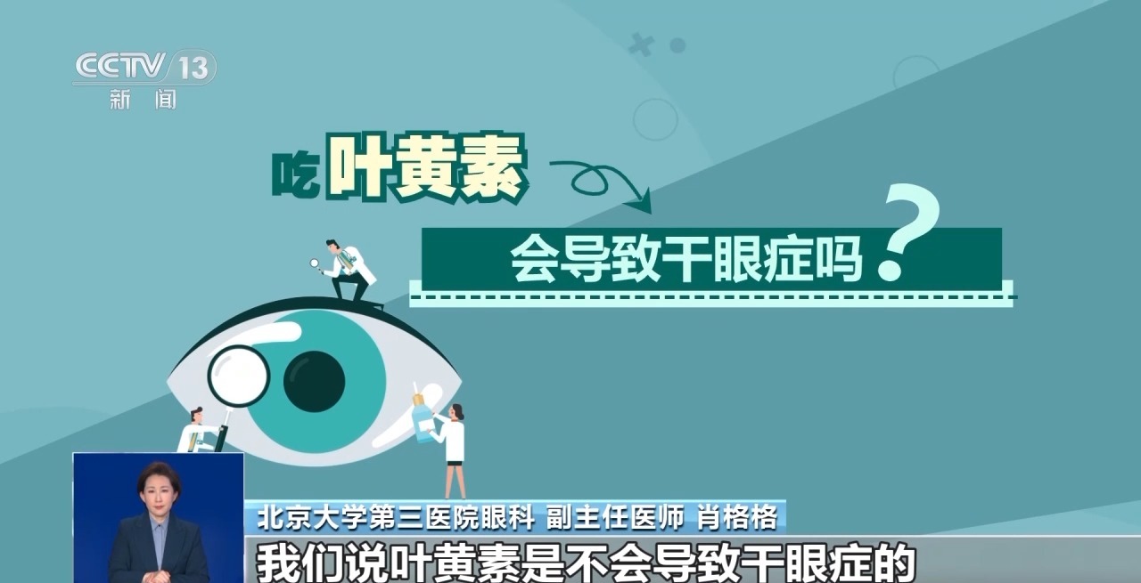 北京大学第三医院眼科 副主任医师 彭荣梅:吃叶黄素不会导致干眼症,因为干眼症多数的原因还是跟我们用眼、眼部的卫生,甚至处的环境都有一定的关系。