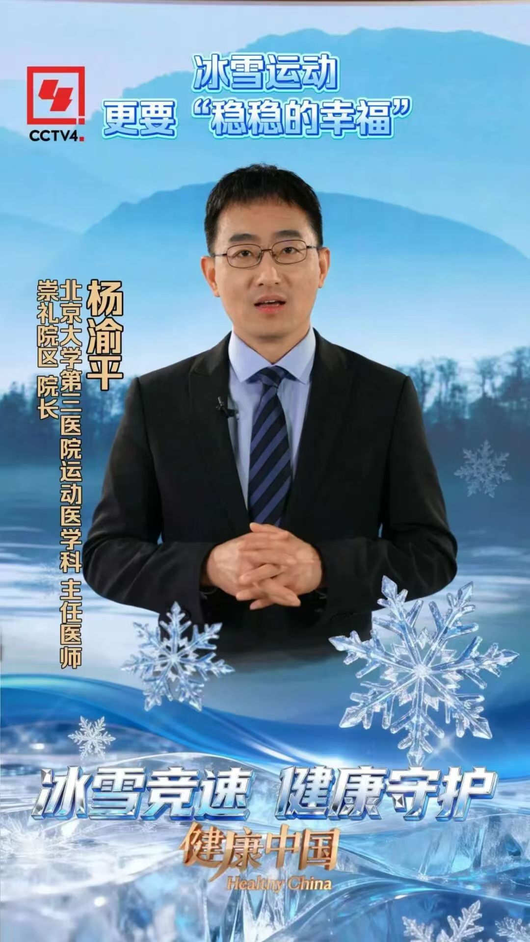 ——【CCTV4健康中国】2月7日,运动医学科杨渝平医生科普冰雪运动如何预防损伤。