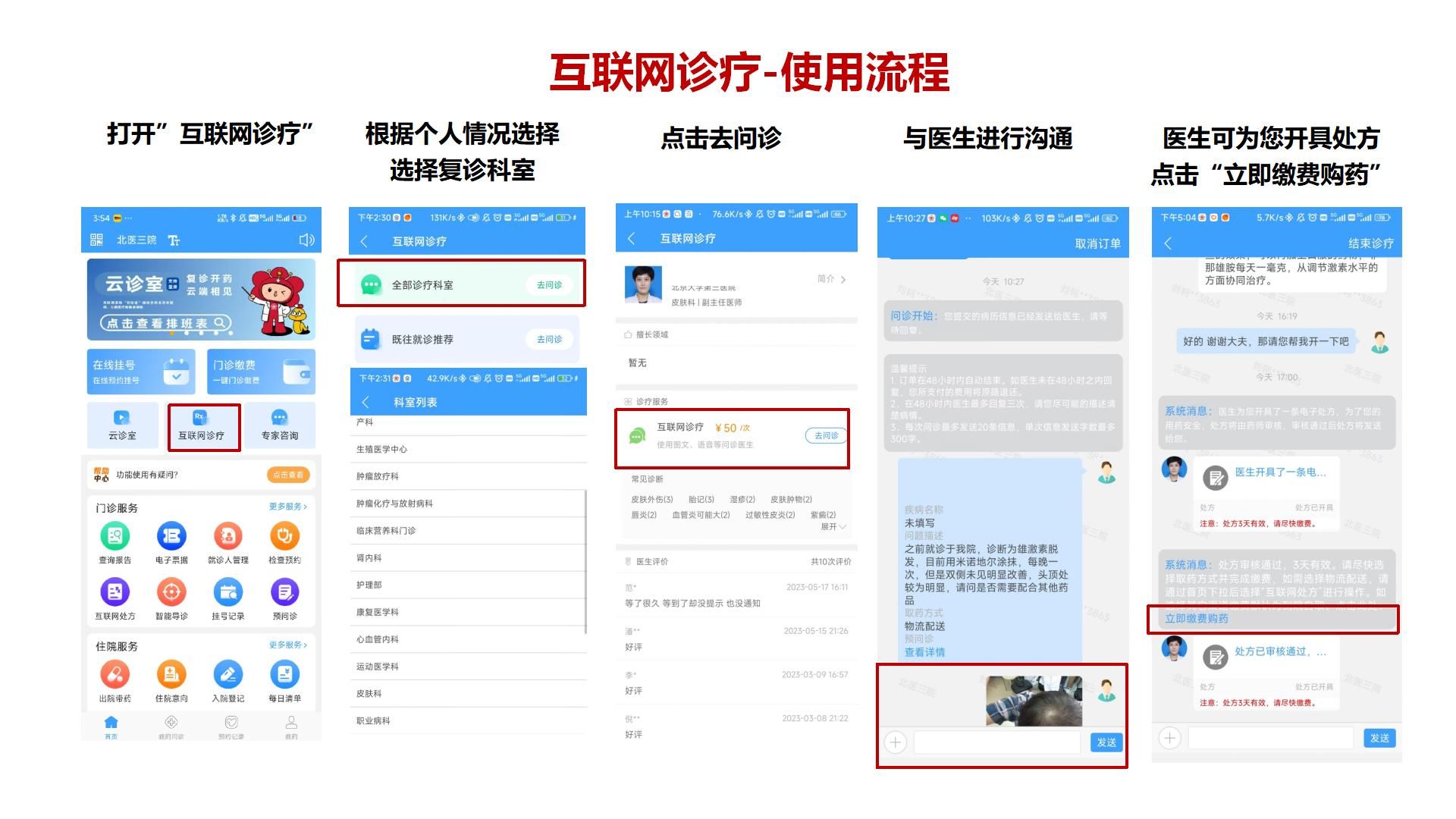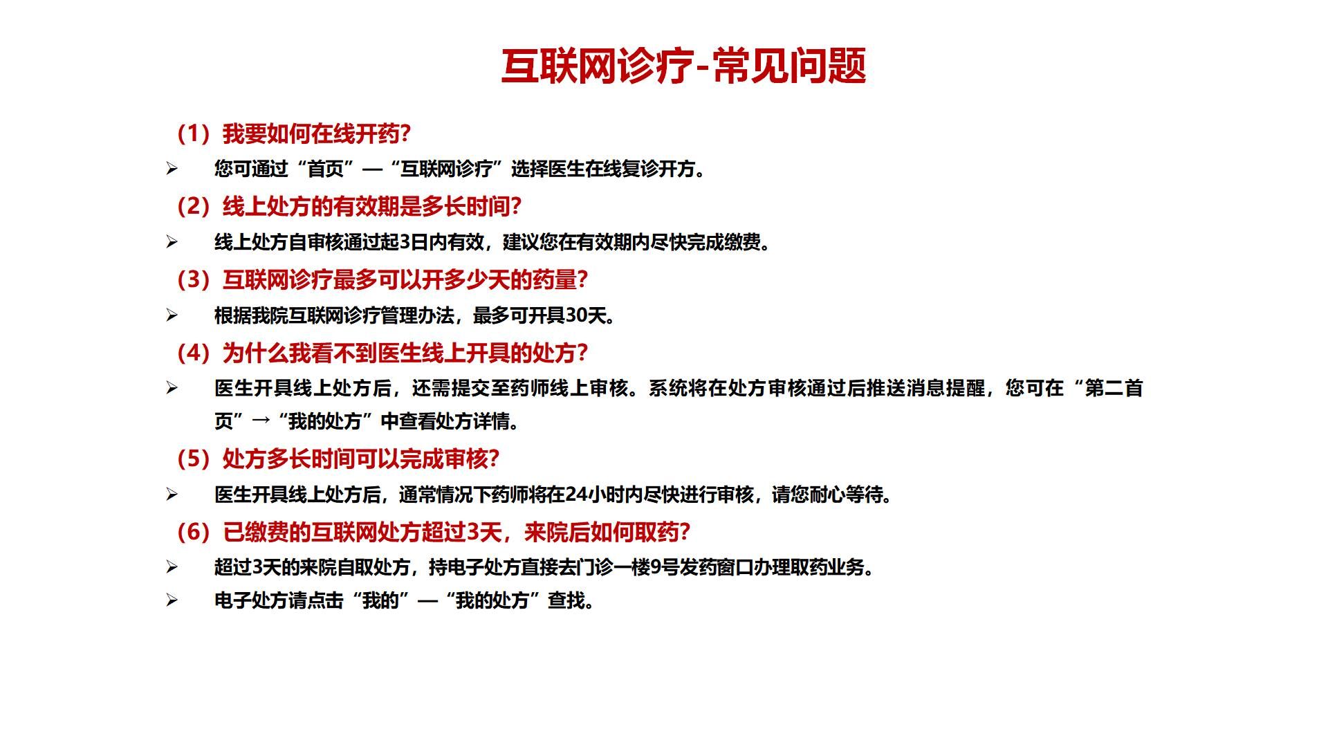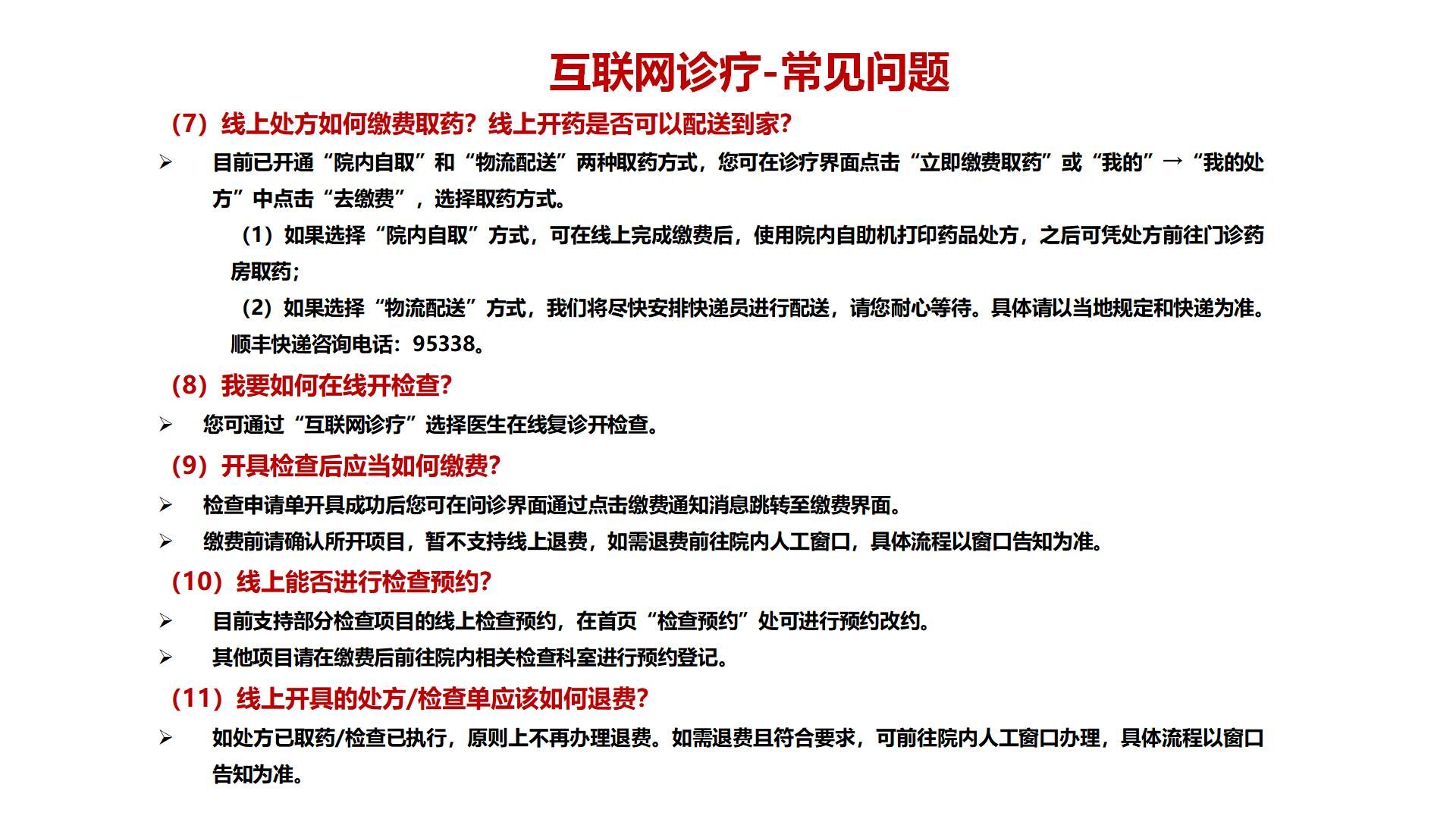互联网诊疗:适用于复诊患者开药、复查等情况,可由医生开具处方检查和药品,患者线上自费缴费,药品配送到家。