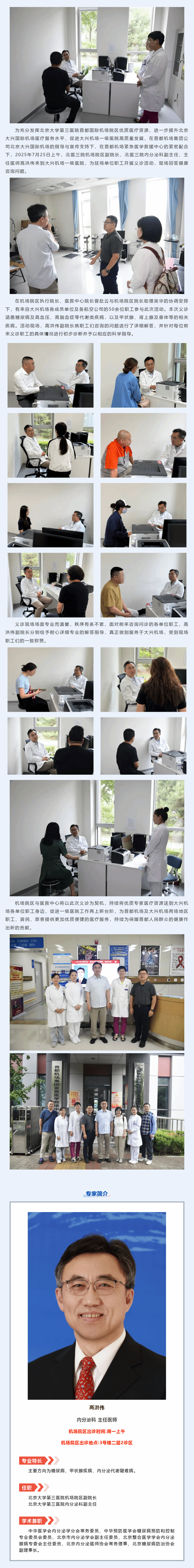 北医三院机场院区副院长高洪伟在大兴机场一级医院开展义诊活动