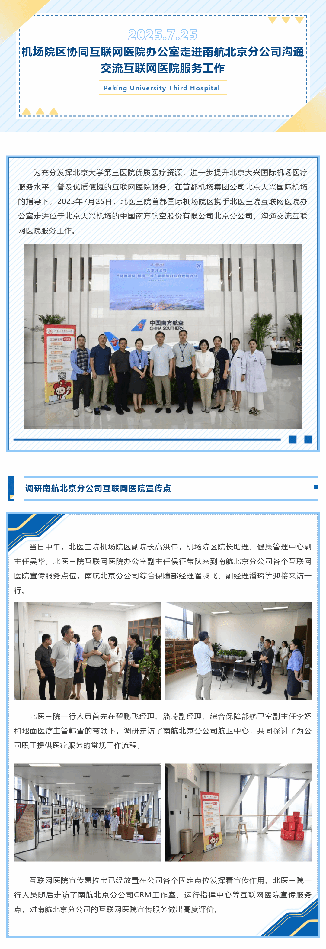 北医三院机场院区协同互联网医院办公室走进南航北京分公司沟通交流互联网医院服务工作