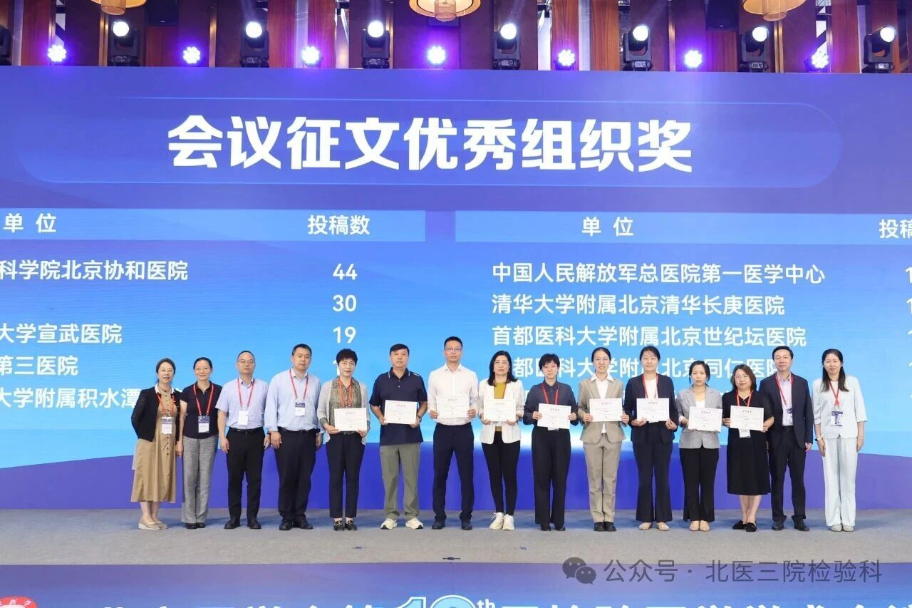 基于北京大学第三医院检验科积极参与北京医学会检验年会,踊跃投稿,组织工作严谨高效,推动学术交流,我科荣获会议征文优秀组织奖和优秀组织奖。