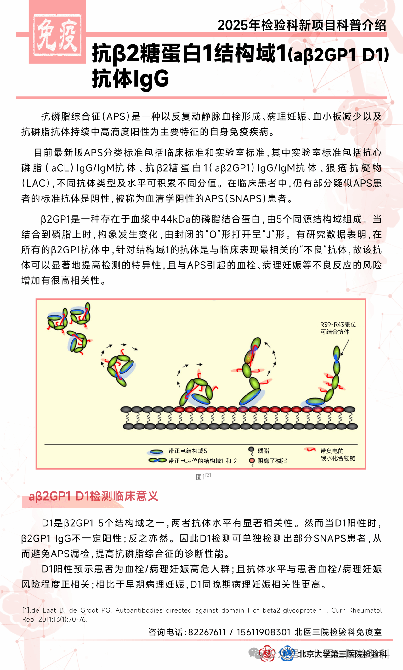 北医三院检验科已开展新项目:抗β2糖蛋白1结构域1抗体IgG检测