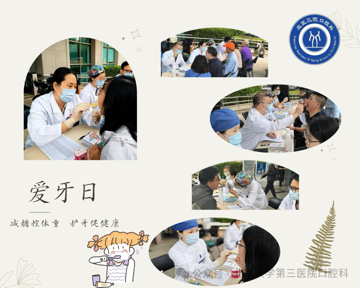 北医三院口腔科积极响应国家号召,为普及口腔健康知识,提升市民口腔保健意识,在口腔科党支部的带领下,于9月19日上午在北医三院本部院区五官楼前组织开展了“减糖控体重、护牙促健康”——全国爱牙日口腔义诊活动。