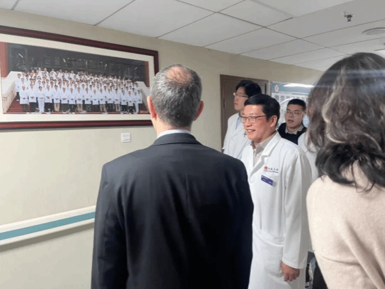 在张树栋教授陪同下,Evangelos Liatsikos 教授参观了泌尿外科病区及科室文化展示区域,对科室完善的人才梯队与持续发展的科研体系给予积极评价。
