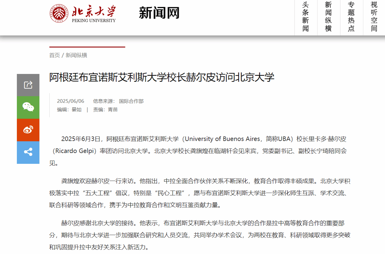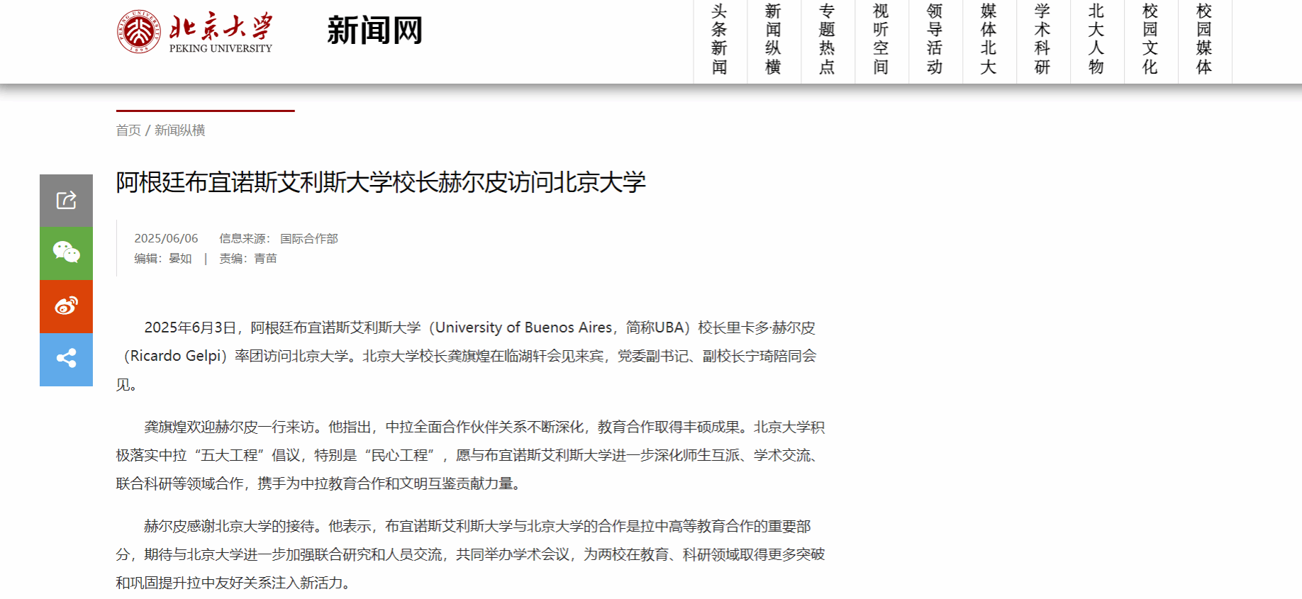 内分泌科魏蕊研究员参加布宜诺斯艾利斯大学校长来访活动