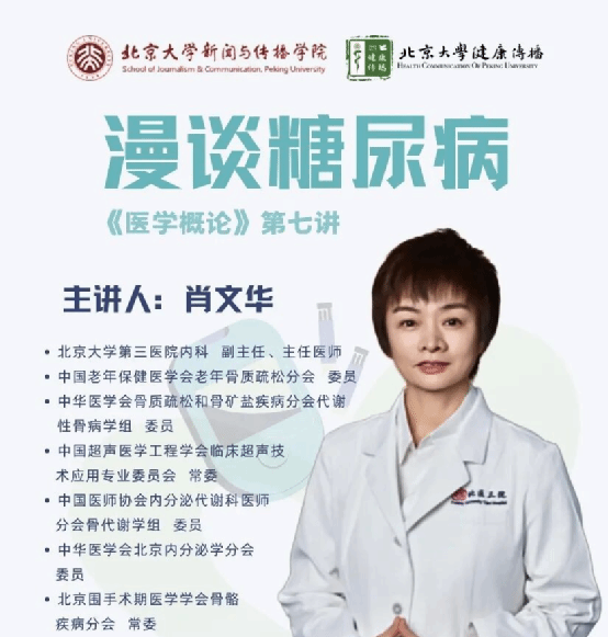 肖文华主任医师应邀在北京大学新闻与传播学院,为健康传播专业研究生作了题为《漫谈糖尿病》的医学概论讲座。讲座系统阐述了糖尿病的基础知识、全球流行现状、诊断治疗及预防策略,强调了健康生活方式与定期监测的重要性,并呼吁未来的传播人才积极投身糖尿病防控的健康传播事业。