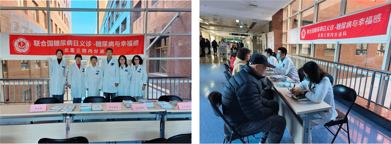 2025年联合国糖尿病日的年度主题为“糖尿病与幸福感”,强调“提高认知,重在行动,关注职场糖尿病”,旨在提升全社会对糖尿病的科学认知,倡导健康工作方式,有效预防和管理糖尿病。为积极响应这一全球号召,北京大学第三医院(北医三院)内分泌科在洪天配主任的带领下,联合多部门、多院区,围绕年度核心议题“职场年轻人该如何避免‘甜蜜烦恼’”,组织开展了形式多样、内容丰富的系列健康促进活动。
