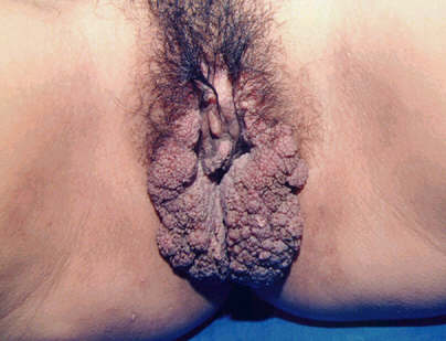 自觉症状无或局部轻度不适。损害好发于性直接接触部位如男性外生殖器、肛门,女性外阴、阴道、子宫颈及肛周等。临床上常分为显性感染、亚临床感染与隐性或潜伏感染三种状态。显性感染的典型损害为隆起的淡红色丘疹样或乳头瘤样、菜花样、鸡冠